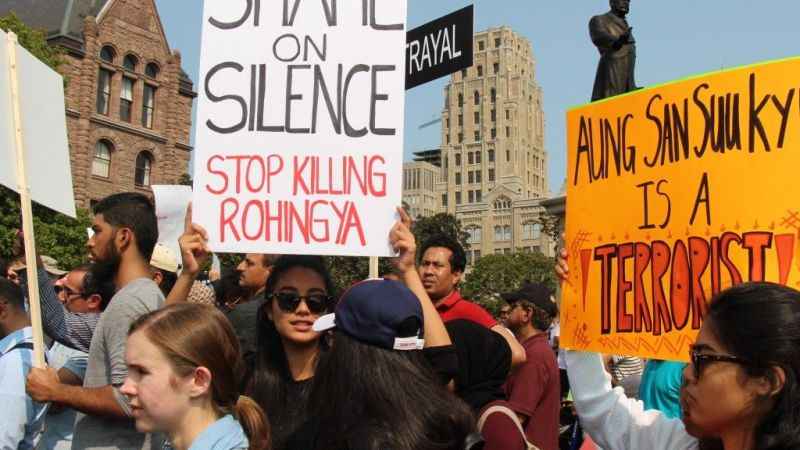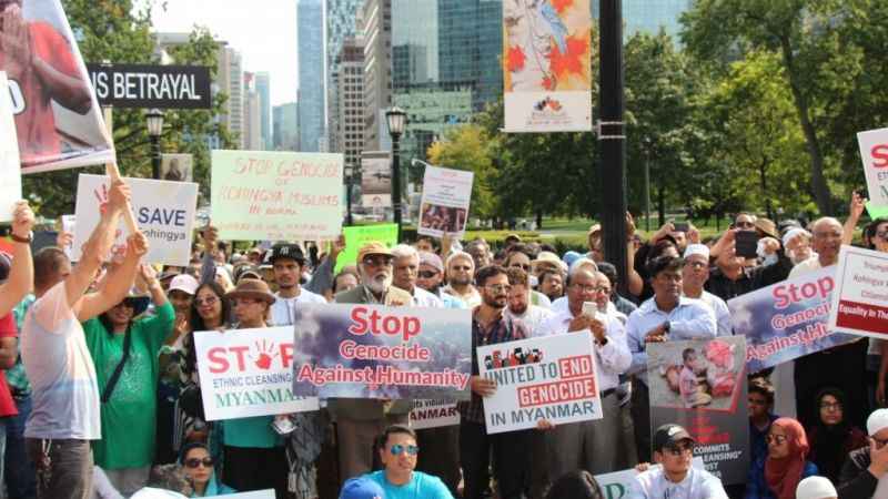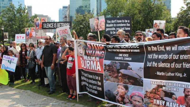 Myanmar'daki Arakan Müslümanlarının maruz kaldığı katliamlar, Kanada'nın Toronto kentinde toplanan binlerce kişi tarafından protesto edildi. Toronto'daki Ontario Eyalet Parlamentosu bahçesinde toplanan binlerce Myanmarlıya, şehirde yaşayan diğer Müslüman topluluklar ile Kanada Birleşik Hristiyanlar Federasyonu da destek verdi.