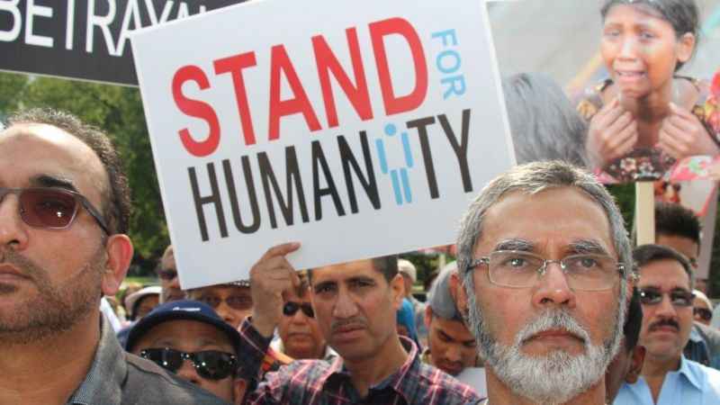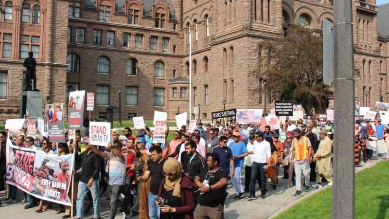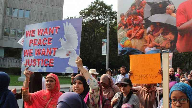 Myanmar'daki Arakan Müslümanlarının maruz kaldığı katliamlar, Kanada'nın Toronto kentinde toplanan binlerce kişi tarafından protesto edildi.