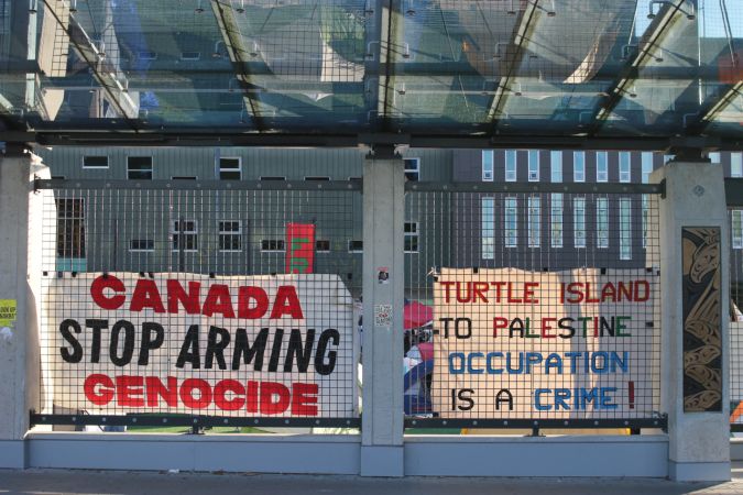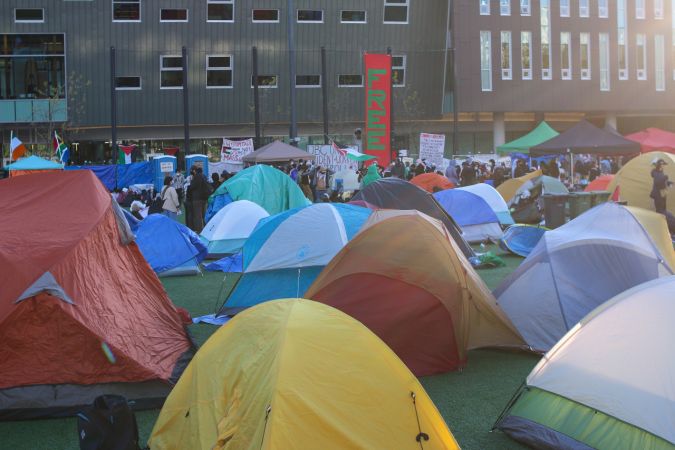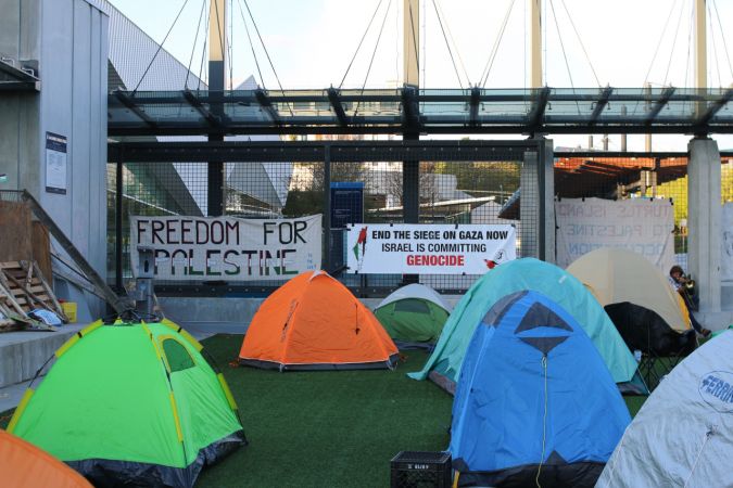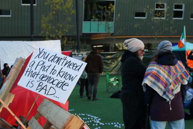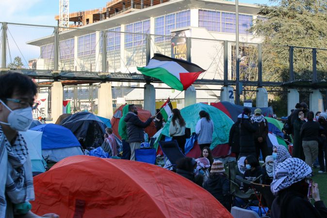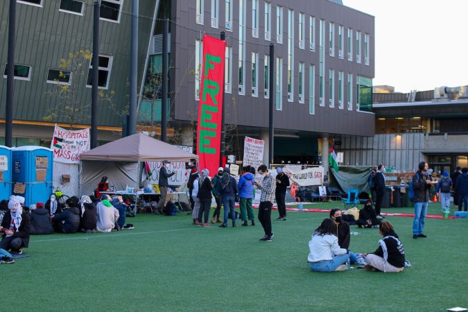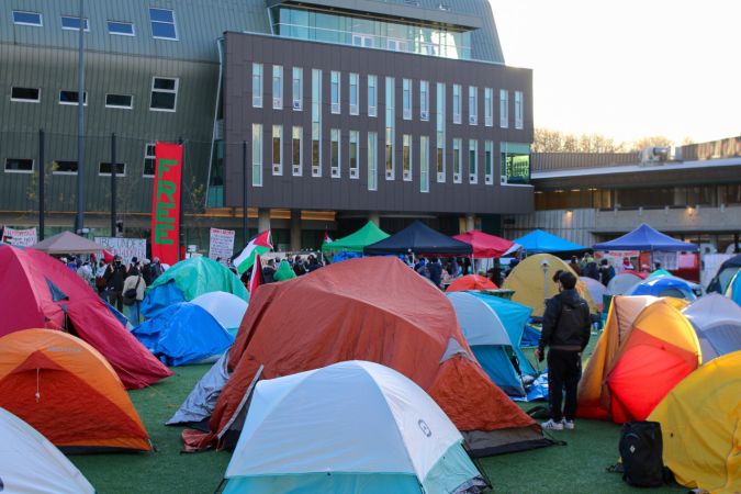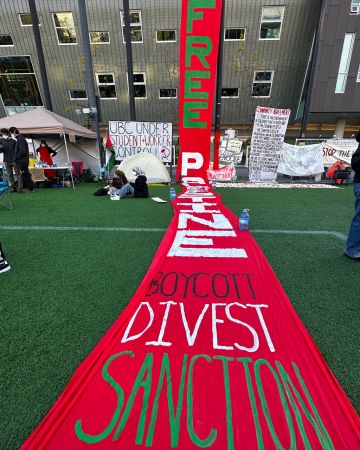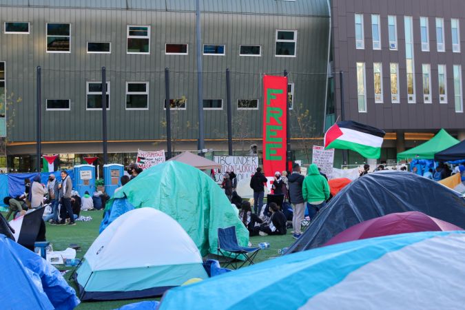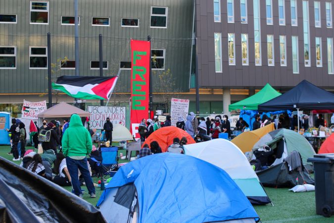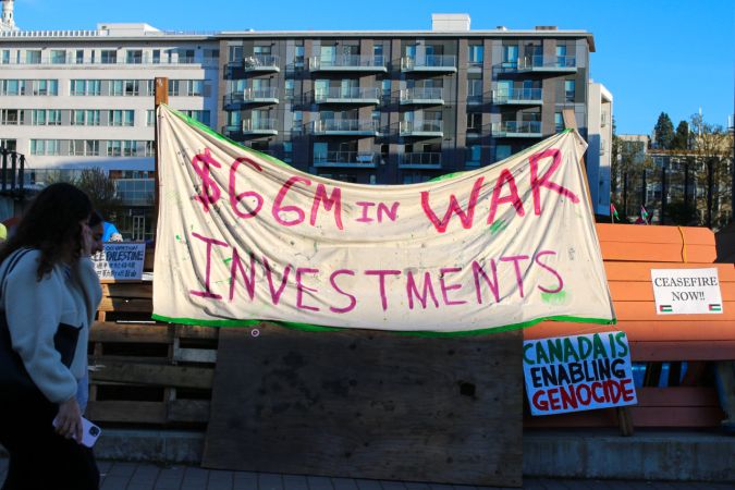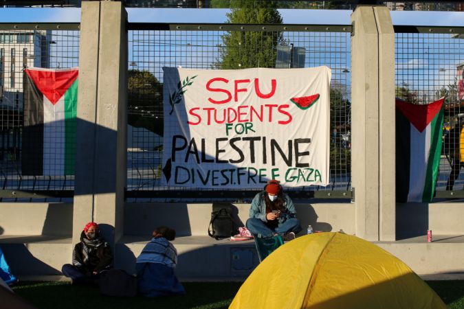 Kanada'nın Vancouver kentindeki British Columbia Üniversitesi'nde (UBC) Filistin yanlısı öğrenciler, İsrail'in Filistin'e saldırılarını ve Gazze'deki soykırımı destekleyen şirketlere devam eden finansal yatırımlarını protesto etmek amacıyla kampüste oturma eylemi düzenledi.