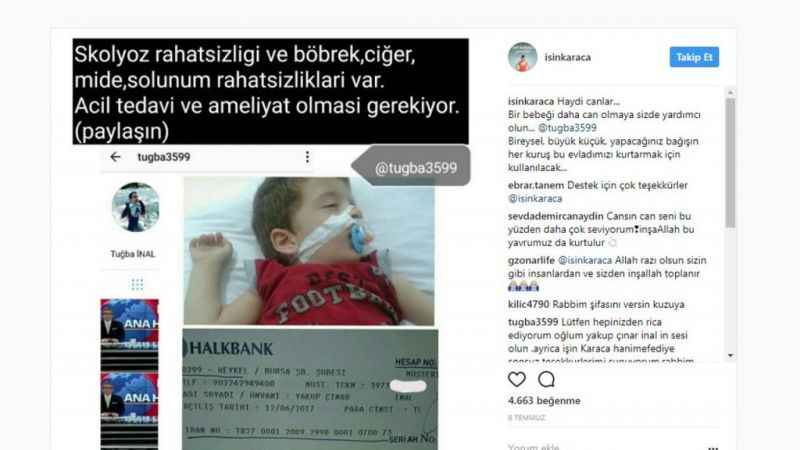 Oğlunun tedavisi için sürekli olarak İstanbul'da bir özel hastaneye gitmek zorunda kaldıklarını ifade eden Tuğba İnal, doktorların Yakup Çınar'ın ameliyatla iyileşebileceğini söylediklerini belirtti. Ameliyat için yaklaşık 400 bin lira gerektiğini belirten anne İnal, "Eşim asgari ücret ile çalışyor. Evimizi zor geçindiriyoruz. Çocuğmun tedavisi için bu kadar paraypı bulmamız mümkün değli. Valilğe müracaat ettik. Yardım kampanyası başlattık. Sanatcı Işın Karaca sosyal medya hesabından hayranlarını Yavuz'a destek için çağrı yaptısada para toplayamadık. Çaresizlik içersinde bekliyoruz. Benim yaşadıklarımı ancak anneler anlar " diye konuştu.