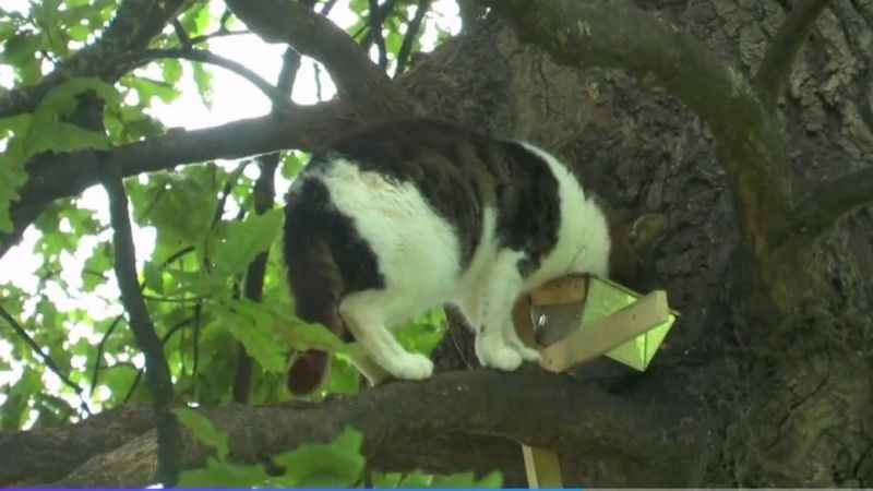 Kediye burada yuva yapılırken, yerel halk ise kediyi beslemek için ağaca tırmanıyor.