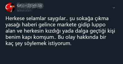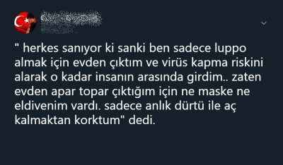 10 Nisan’da Cuma gecesi ilan edilen sokağa çıkma yasağı sonrası bir çok insan market ve fırınlara akın etmiş ve sosyal mesafe kurallarını hiçe saymıştı. Ancak o akşam marketten luppo şekerleme alan bir kişi sosyal medyada tepki çekmiş ve hakkında tepki dolu sözler yazılmıştı.