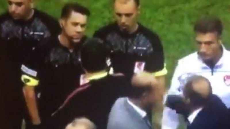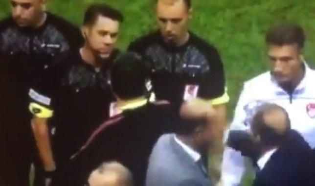 Olaylı Galatasaray - Fenerbahçe derbisinde bitiş düdüğünün çalması ile birlikte Fatih Terim, hakem Aydınus'un yanına koştu...