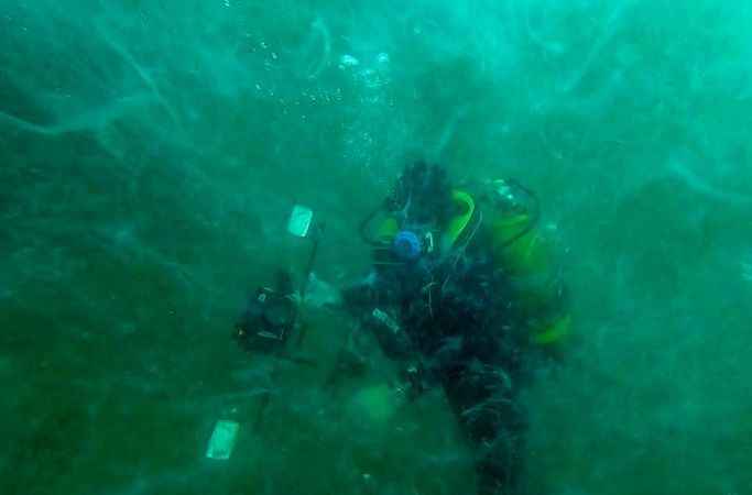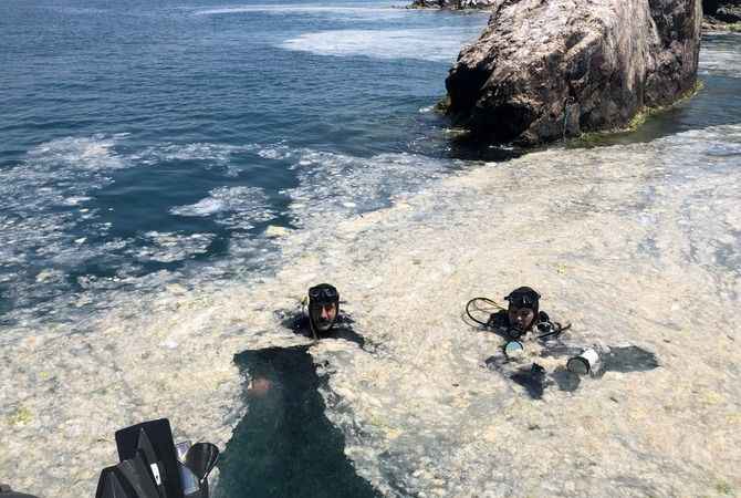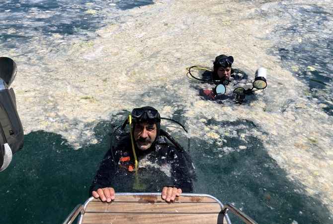 Ercan Akpolat, Serço Ekşiyan, Ateş Evirgen ve Foto Muhabiri Şebnem Coşkun'dan oluşan ekip, Tavşan Adası olarak da bilinen Neandros açıklarında, deniz altındaki müsilajı görüntülemek için dalış yaptı.