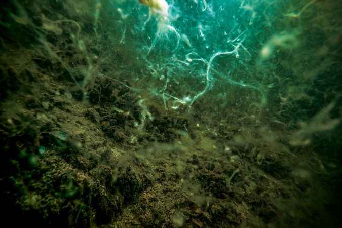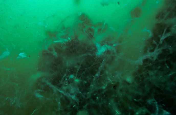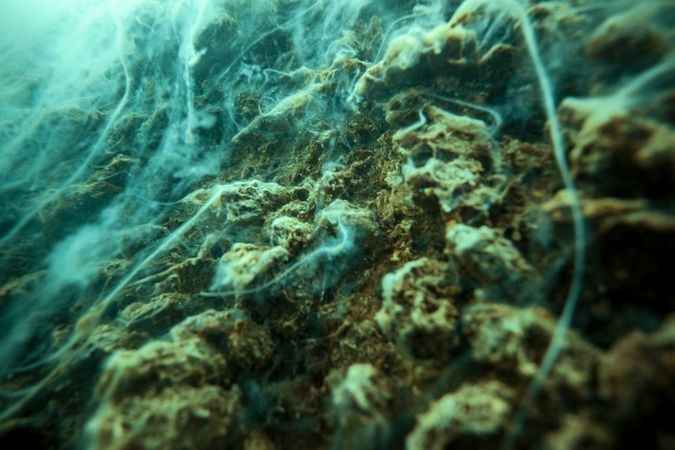Su altındaki kaya oluşumları üzerinde de yoğun şekilde görülen müsilajın, örümcek ağı görünümüne sahip olması dikkati çekti.