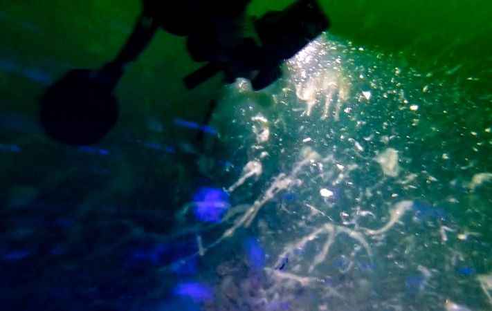 Dalış ekibinden Ercan Akpolat, "Denizin sıfır yüzeyinden 30 metreye kadar müthiş bir şekilde, göz gözü görmeyecek kadar yoğunluk var. Dışarıda gördüğünüz deniz salyası, aşağıda çürüdükçe yukarı çıkacak." dedi.