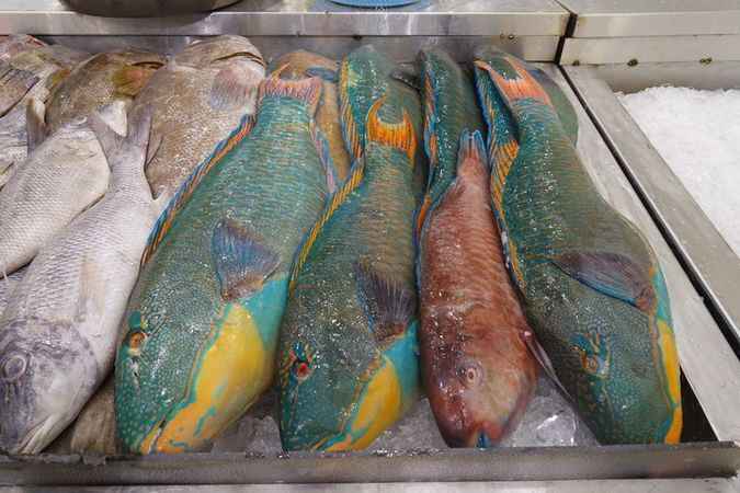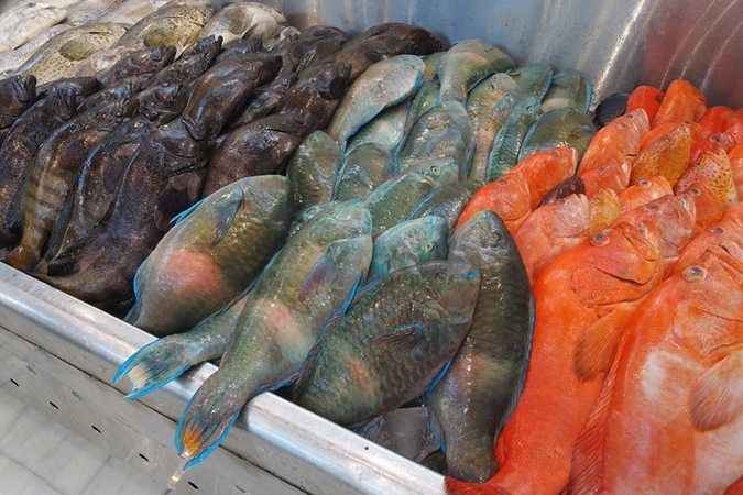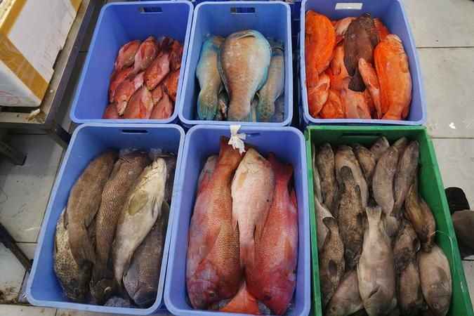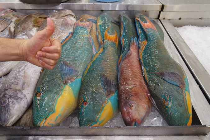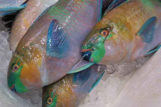 Mekke'deki Kaake balık haline gidenler Kızıldeniz'den çıkarılan renkli balık türlerini görünce şaşırıyor. İşte rengarenk balık türleri...