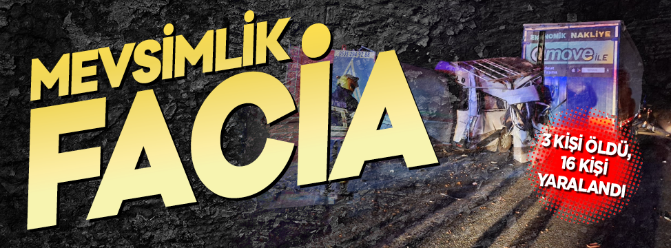 Mersin'in Tarsus ilçesinde tarım işçilerini taşıyan minibüsün tıra çarpması sonucu 3 kişi öldü, 16 kişi yaralandı.
