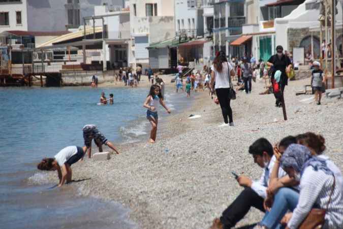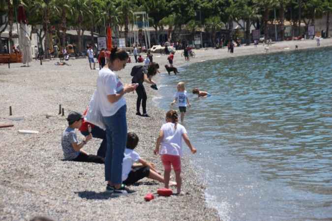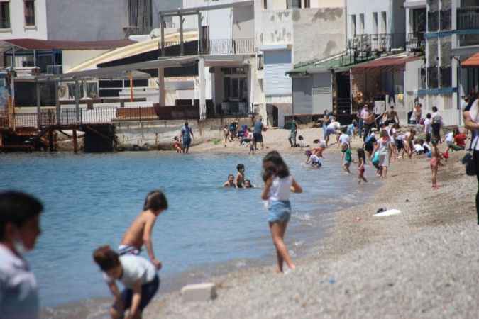 Sokağa çıkma kısıtlamasına 4 saat ara verilmesini tamamen yanlış anlayan bazı aileler ise çocuklarını denize sokmayı ihmal etmedi.