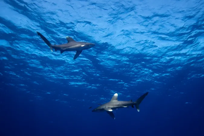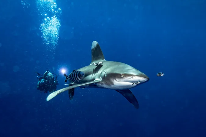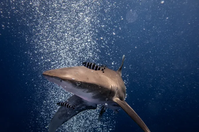 AA muhabirinin derlediği bilgilere göre, Mısır'daki Kızıldeniz'de, mercan resiflerinin yakınlarında yaşayan ve beslenen beyaz yüzgeç resif köpekbalığı ile uzun burunlu dönücü yunuslarının insan kaynaklı kirleticiler, aşırı avlanma, hedef dışı avcılık ve küresel iklim değişikliği sebebiyle nüfusları ile dağılım oranlarında son yıllarda hızlı bir değişkenlik gözleniyor. Fotoğrafta, Big brother dalış noktası ve çevresinde beyaz yüzgeç resif köpekbalığı görülüyor.