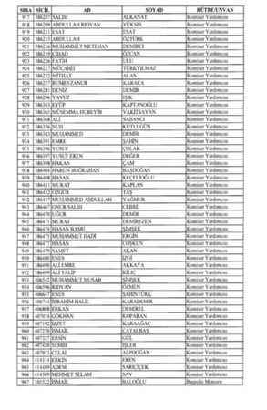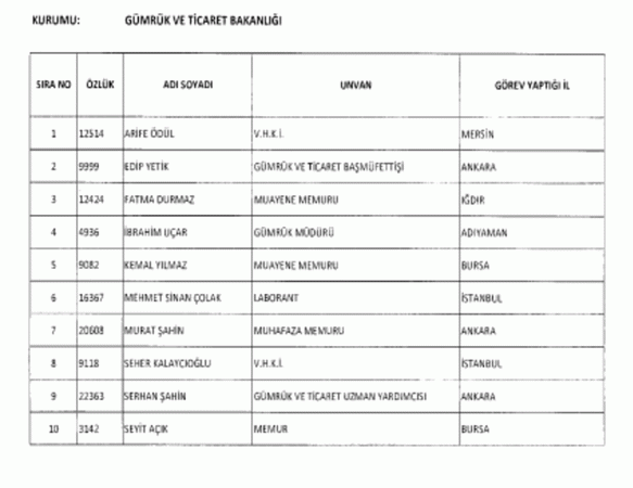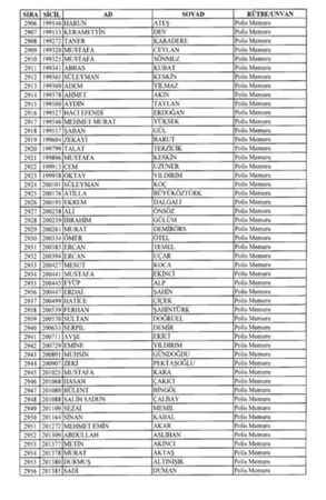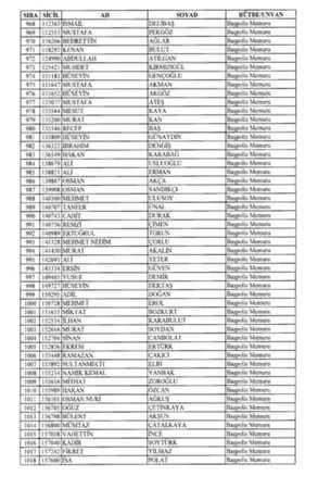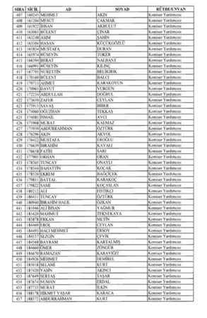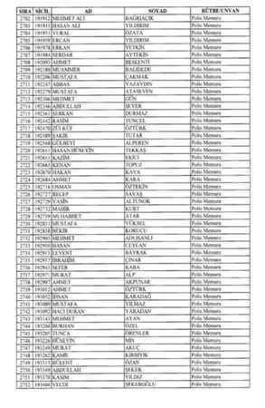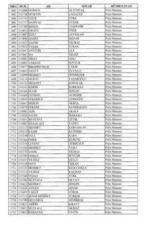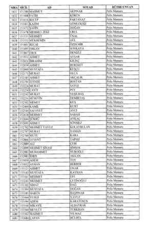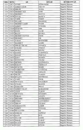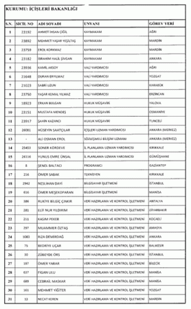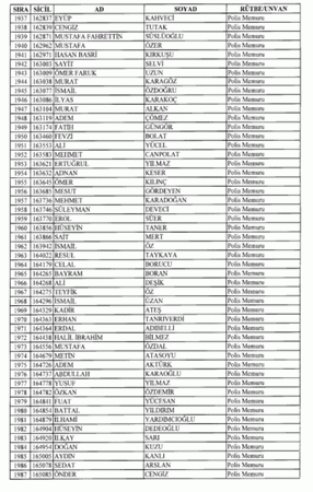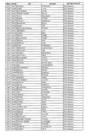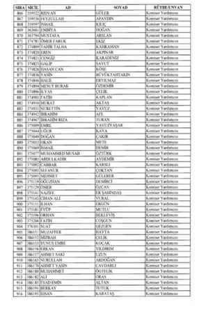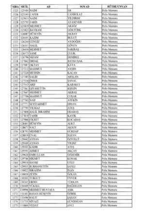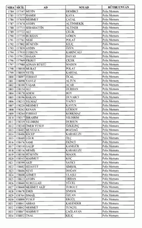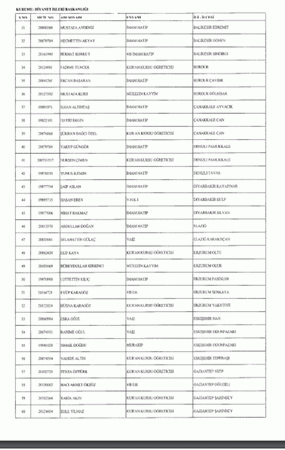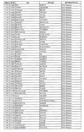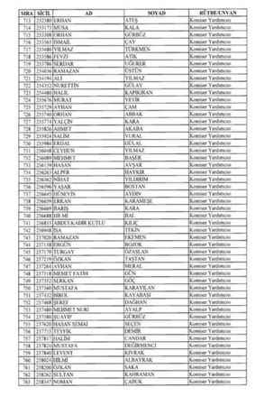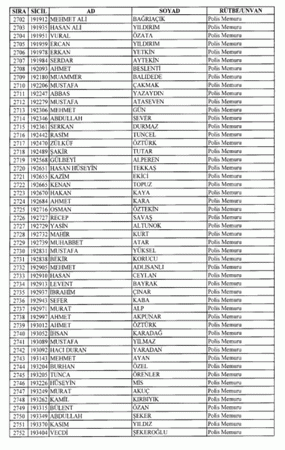 İşte 701 sayılı KHK ile ihraç edilenlerin isim listesi şöyle: