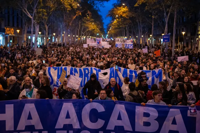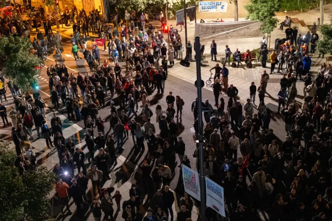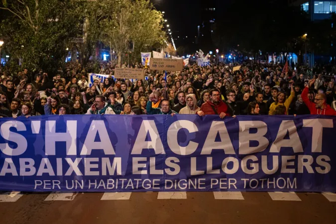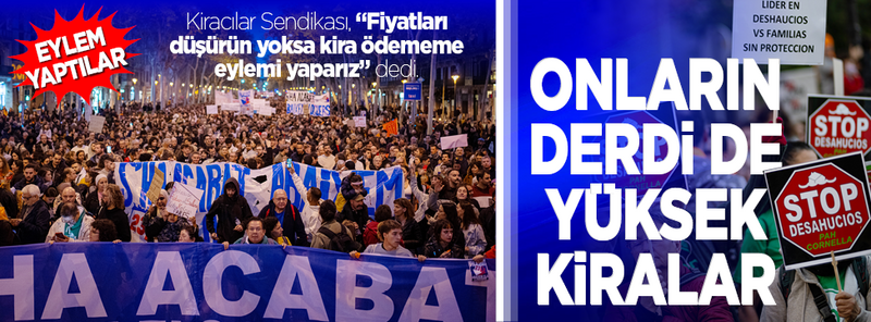 "Artık bitti. Herkes için onurlu bir oda için kiraları düşürün" yazılı pankartın arkasında yürüyen Katalanlar, son yıllarda sürekli yükselen ev kiralarını protesto etti.