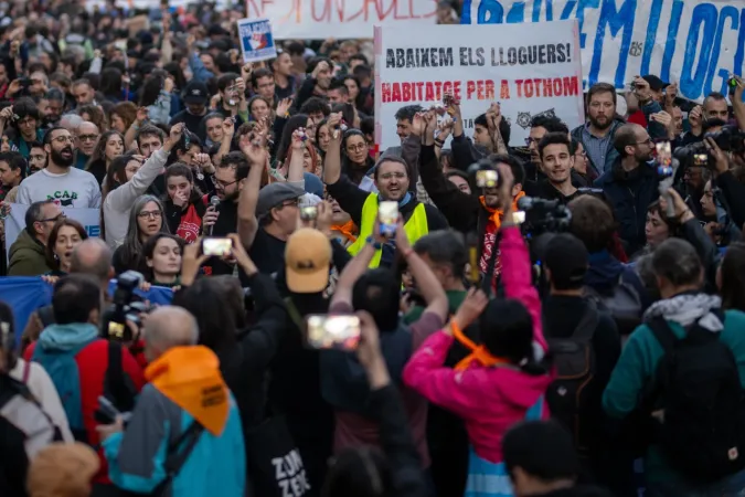 İspanya'nın önemli turistik kentlerinden biri olan Barselona kentinde binlerce kişi, yüksek ev kiralarını protesto etmek için meydanlara döküldü.