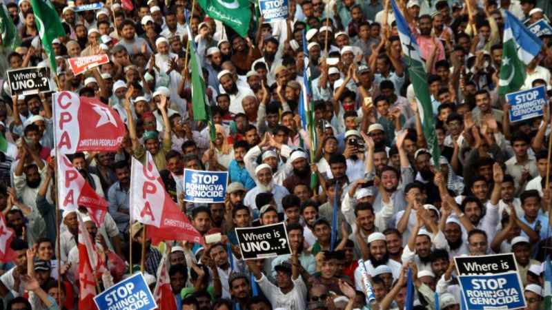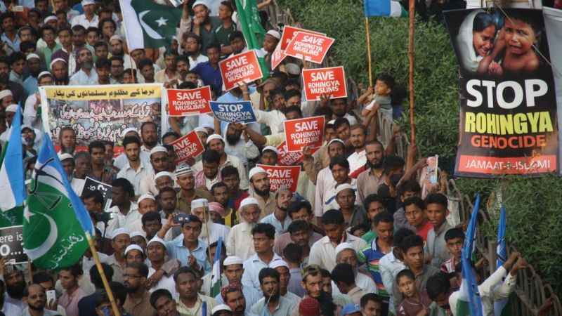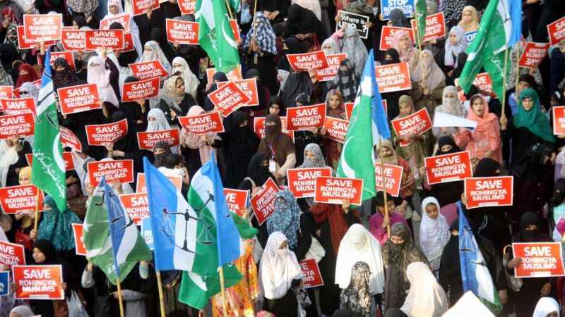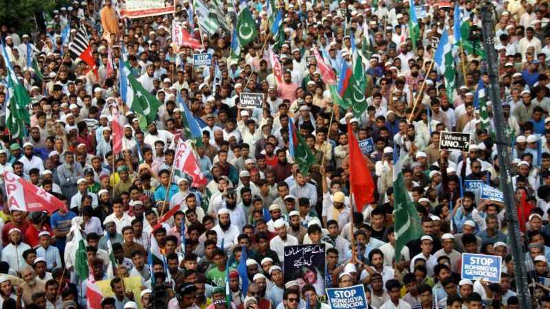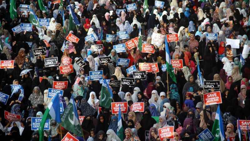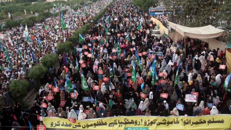 Pakistan'ın Karaçi kentinde bir araya gelen Pakistan İslâmi Cemaat Partisi destekçileri, Myanmar’daki Arakanlı Müslümanları hedef alan şiddet olaylarını protesto etti. 'Rohinga’yı kurtarın' ve 'Rohinga’daki soykırımı durdurun" yazan dövizler açan göstericiler, Arakan’da katledilen Müslümanların fotoğraflarını taşıdı.