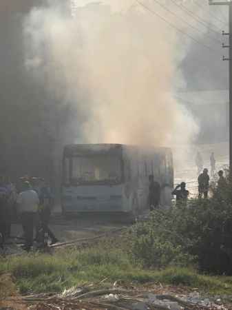Alevler kısa sürede otobüsün arka kısmını sardı.