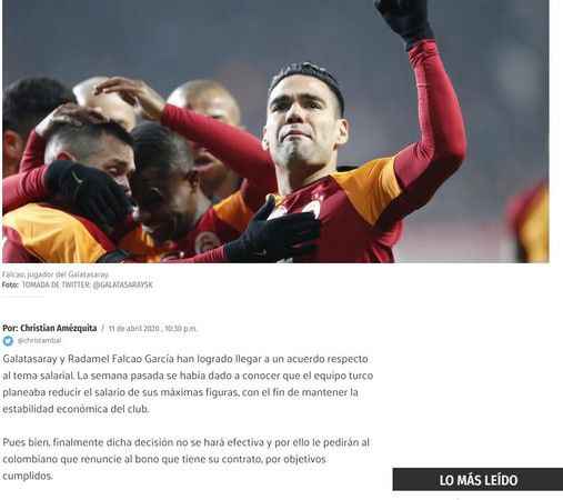 Futbolred.com sitesinin haberine göre; Galatasaray Yönetimi, tüm dünyayı kasıp kavuran corona virüsü salgını sonrasında takımda yüksek ücret alanların maaşında kesintiye gitmeyi planladı. Kadroda en fazla kazanan isim, Kolombiyalı golcü Falcao...