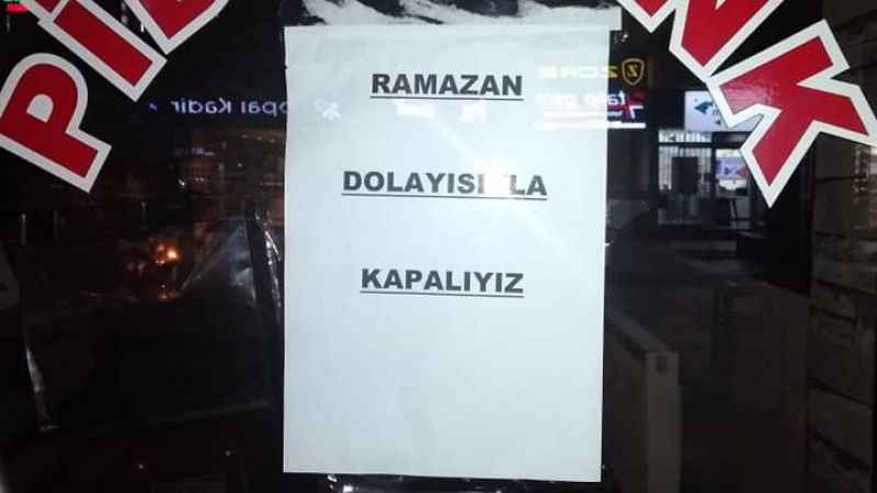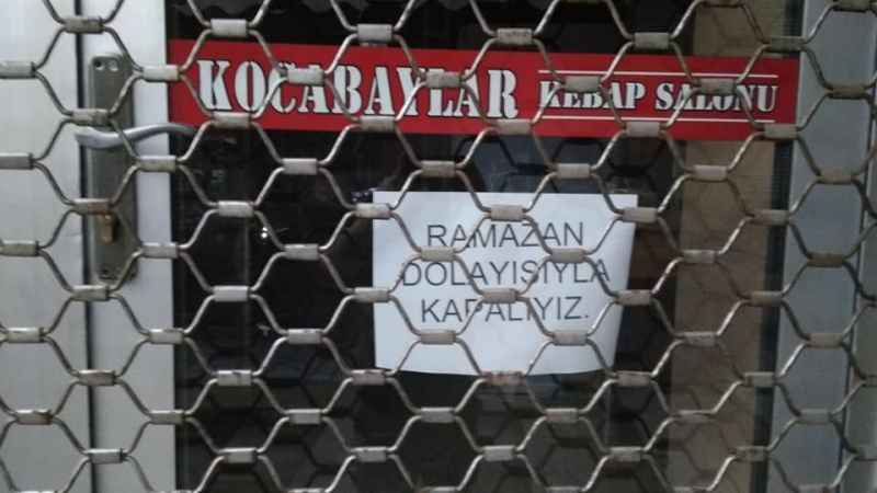 Restoran, kafe gibi yiyecek içecek üzerine iş yapan işletmeler, Ramazan ayı münasebetiyle kapılarını kapattı.