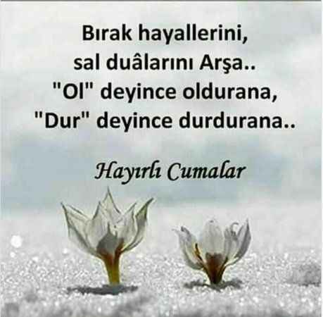 Ey iman edenler! Cuma günü namaz için çağrı yapıldığı zaman, hemen Allah'ın zikrine koşun ve alışverişi bırakın. Eğer bilirseniz bu, sizin için daha hayırlıdır.(Cum'a, 62/9) Cumanız mübarek olsun.