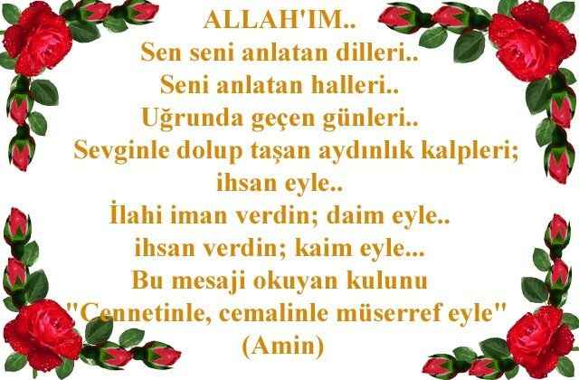 Allahim beni af eyle, her derdimi def eyle, rizkimizi bol eyle, kabrimizi nur eyle, sual meleklerinin cevabini muktedir eyle.