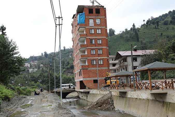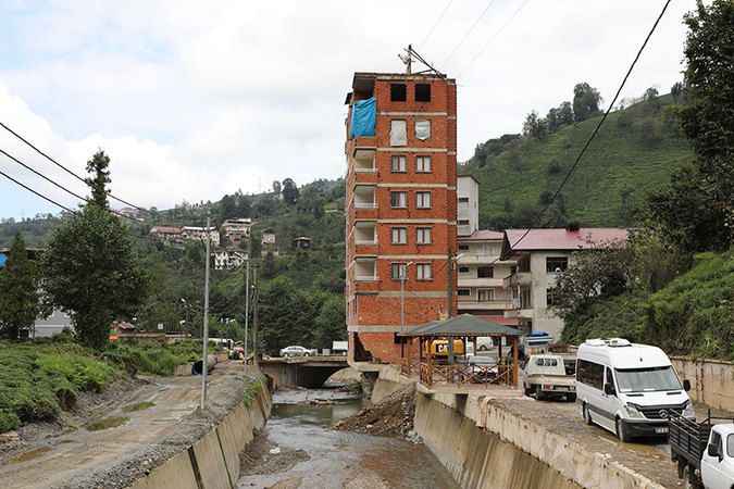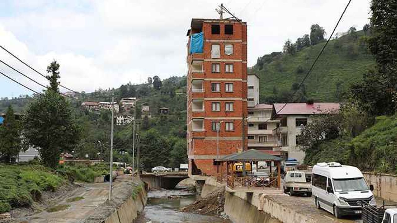 Rize'de, şiddetli yağışların sonrasında gündeme gelen 7 katlı bina için Çevre ve Şehircilik İl Müdürlüğü tarafından yıkım kararı alındı. Rize’nin Muradiye beldesinde yaklaşık 2 ay önce şiddetli yağışın sonrasında Mustafa Yazıcı'ya ait 7 katlı bina, basında yer almasının ardından tartışma konusu olmuştu.
