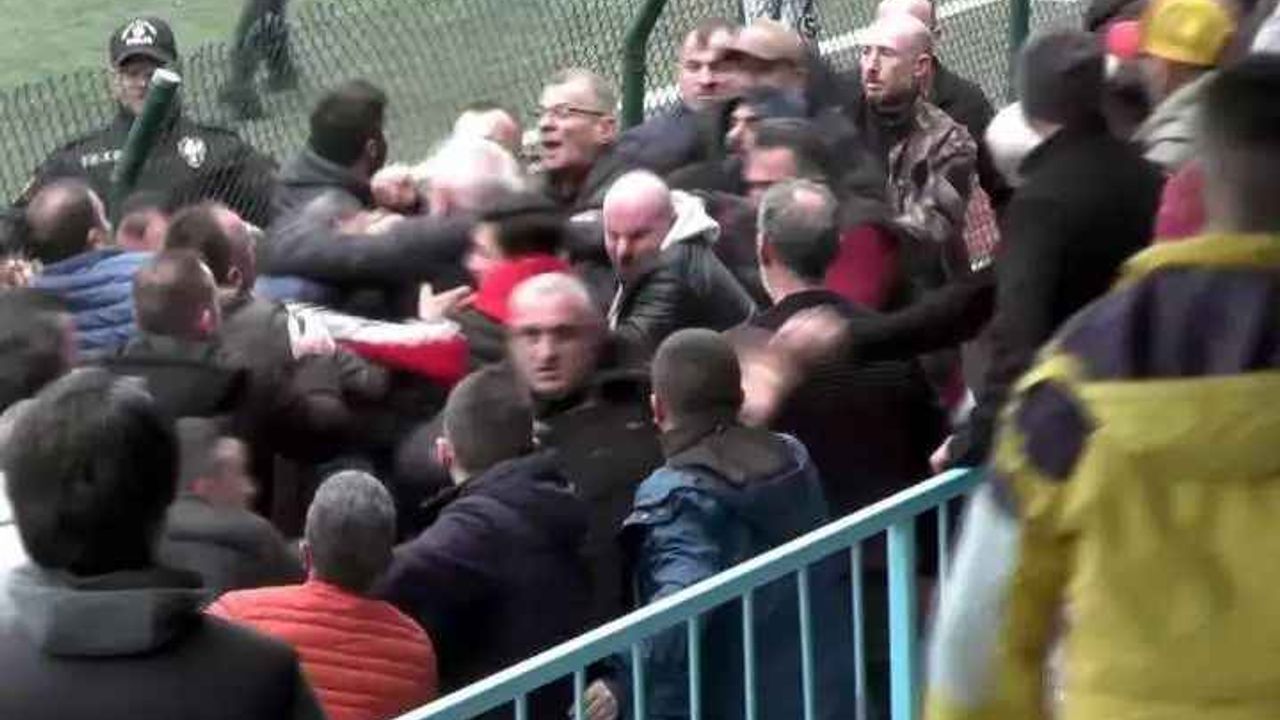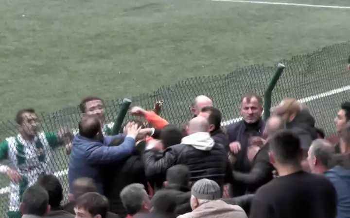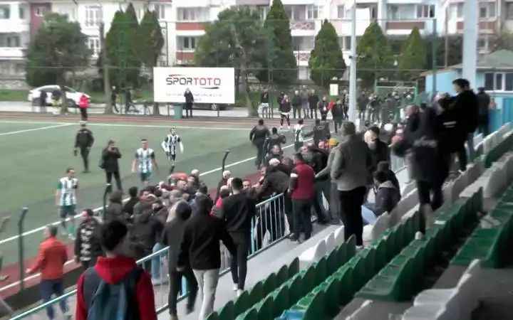 Sakarya’da Süper Amatör Lig’de oynanan müsabakada uzatma dakikalarında iki takım oyuncuları arasında çıkan arbede tribünlere de sıçradı.