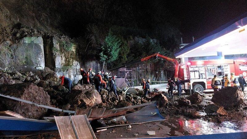 Samsun'un Canik ilçesinde meydana gelen heyelanda, akaryakıt istasyonunun yanındaki oto yıkamacıda üzerlerine kaya parçaları ve toprak düşen baba ile 2 kızı öldü.