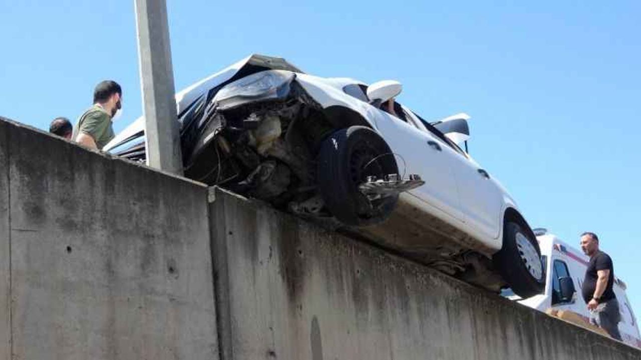 Otomobilin ön lastiği askıda kaldı ve aracın alt yola düşme ihtimali üzerine korku ve panik yaşandı.