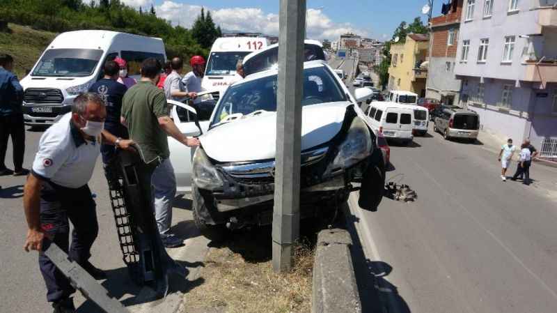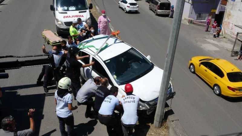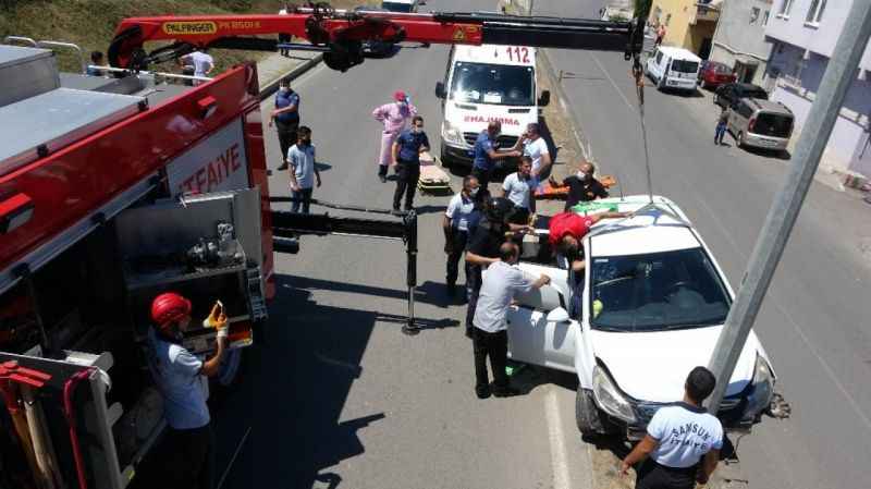 Kaza, Samsun’un İlkadım ilçesi Anadolu Mahallesi Korhan Ekiz Bulvarı üzerinde meydana geldi. Edinilen bilgiye göre, Sayime Ergün (45) idaresindeki 16 ABL 116 plakalı otomobil ile seyir halindeyken bir otomobilin sıkıştırması sonucu yoldan çıkarak duvar üzerinde ilerleyip demir aydınlatma direğine çarparak askıda kaldı.