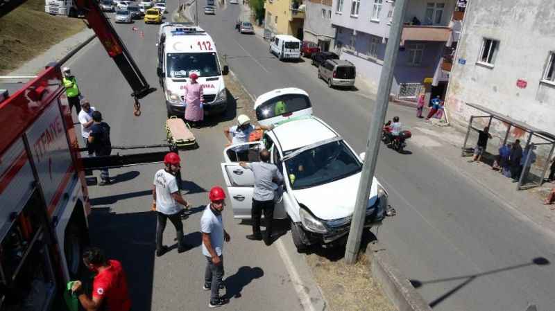 Kazada, otomobil sürücüsü Sayime Ergün ile yanında bulunan Çiğdem Er yaralandı.