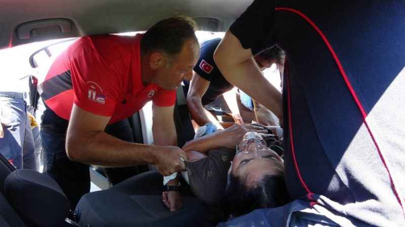 Yaralı sürücüsü Sayime Ergün’e sağlık ekipleri ilk müdahaleyi aracını içinde yaptı.