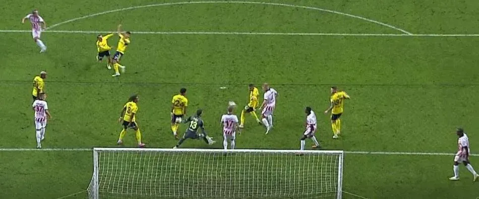Deniz Çoban: "Golün verilmesi daha doğru olurdu. Artık kaleci hamle yapacak olsa da bir şey değişmez. Kaleci hamle yapacaksa önceden yapmalıydı. 17 numaralı oyuncu çıksa da kalecinin kurtarma şansı yok."