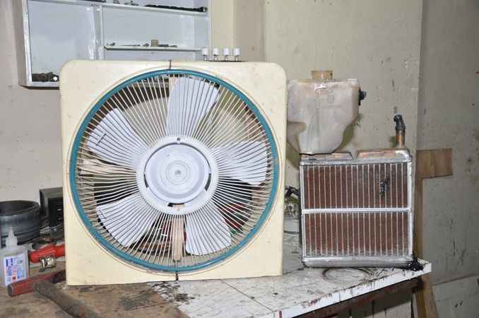 Manisa’nın Yunusemre ilçesinde yaşayan 60 yaşındaki ilkokul mezunu marangoz Hasan Hüseyin Toğan, sıcak havadan bunalınca ucuz ve kısa yoldan serinleyebilmek için ilginç bir yöntem buldu. Maddi imkansızlığı sebebiyle yüksek maliyetler ödeyerek klima satın almak istemeyen Toğan, ekonomik bir klima yapmaya karar verdi. Elektrikle çalışan vantilatörü tahta bir kutuya sabitleyen Toğan, vantilatörü otomobil radyatörü birleştirerek buzlu suyla çalışan bir klima geliştirdi.
