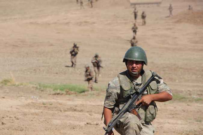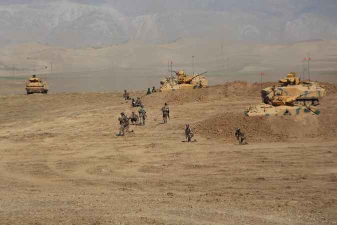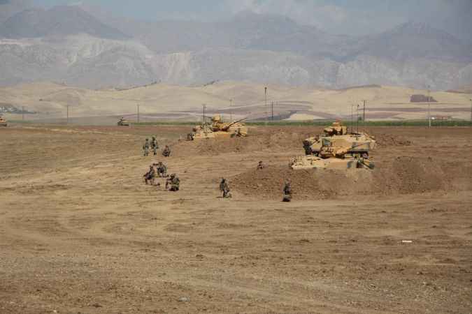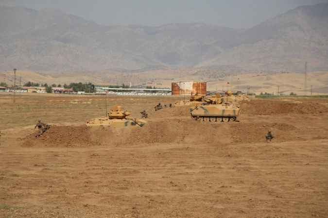 Türk Silahlı Kuvvetleri 'nce Habur Sınır Kapısı yakınlarındaki TIR parkı karşısında yapılan tatbikat 24’üncü gününe girdi. Irak özel kuvvetlerinin de katıldığı tatbikatta bugün askerler, temsili 2 düşman mevzisini ele geçirme tatbikatını gerçekleştirdi. Mevzilerde konuşlu zırhlı birlikleri, dört bir yandan kuşatan Irak ve Türk askerleri, mevziyi temsili operasyon ile ele geçirdi. Zırhlı muharebe araçları (ZMA) ve tankların mevzilere sevk edilmesi ile birlikte tatbikat devam etti. Askerlerden bir kısmının ZMA’larla, bir kısmının da yürüyerek manevra alanından karargah merkezine doğru yol alması ile tatbikat tamamlandı.