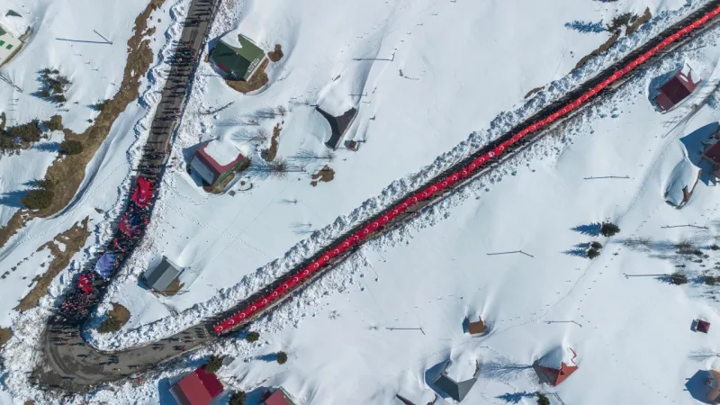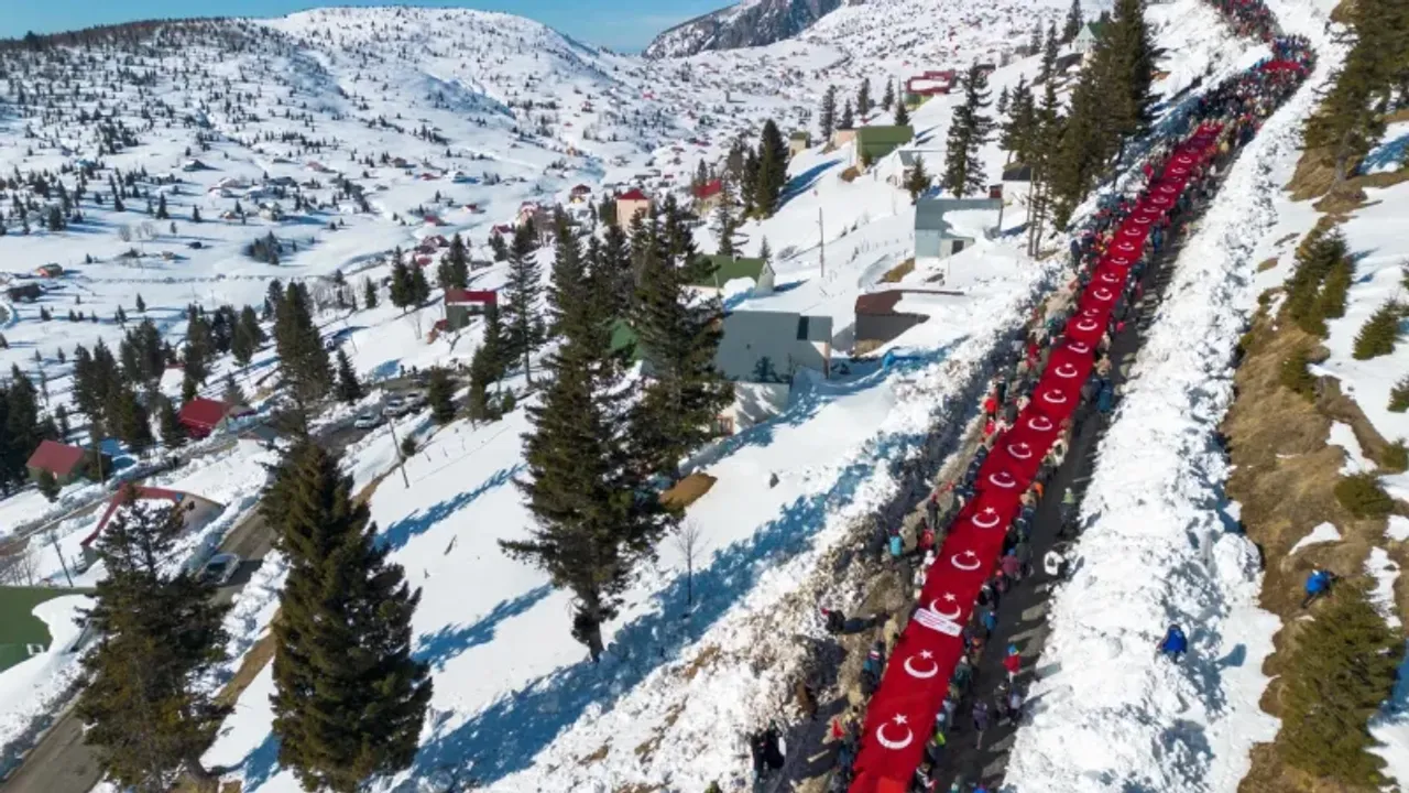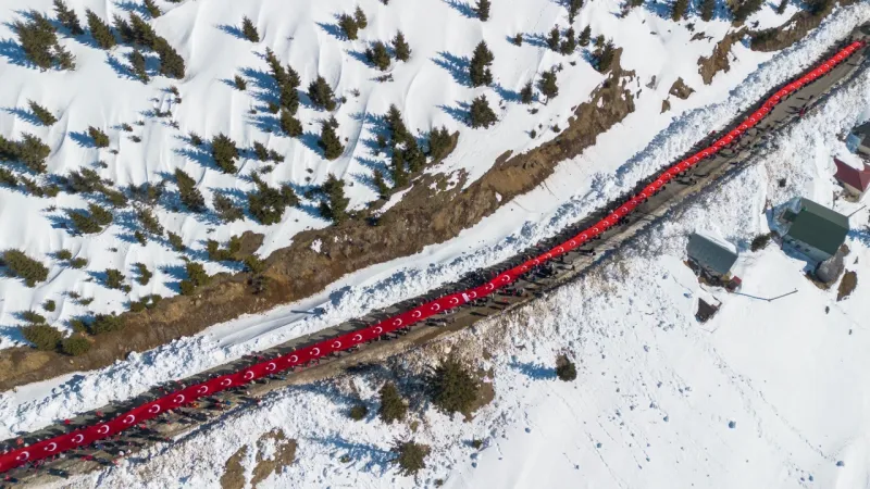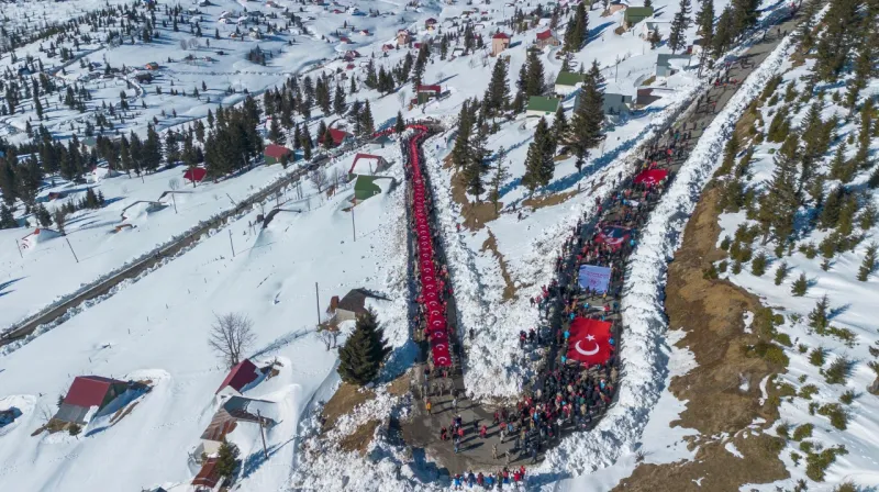Sarıkamış Harekatı'nın 110'uncu yıl dönümü dolayısıyla Trabzon'un Şalpazarı ilçesindeki 2 bin 200 rakımlı Sis Dağı'nda anma yürüyüşü gerçekleştirildi. Şıhkıranı mevkisinde başlayan ve Sis Dağı'na kadar devam eden yürüyüşe katılanlar, metrelerce uzunluktaki Türk bayrağı taşıdı.