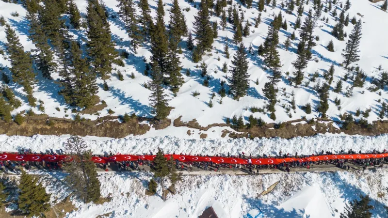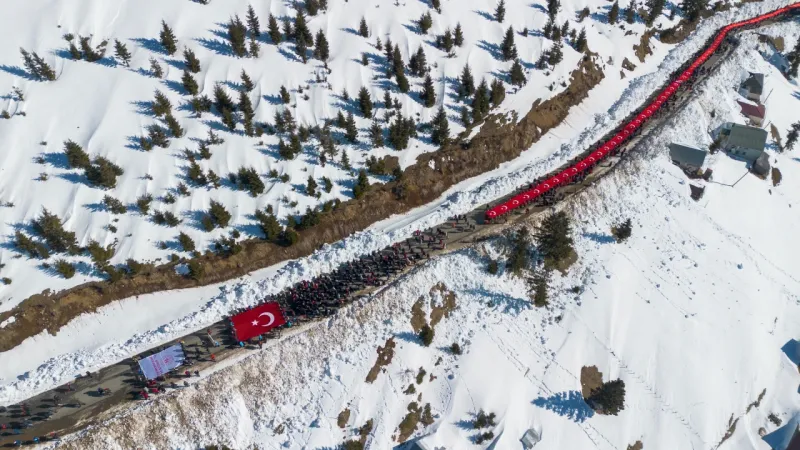 Şıhkıranı mevkisinde başlayan ve Sis Dağı'na kadar devam eden yürüyüşe katılanlar, metrelerce uzunluktaki Türk bayrağı taşıdı.