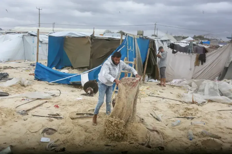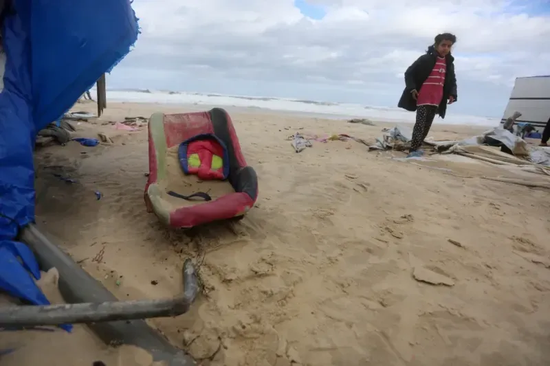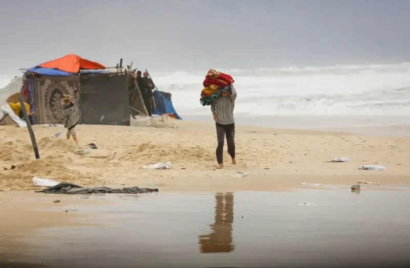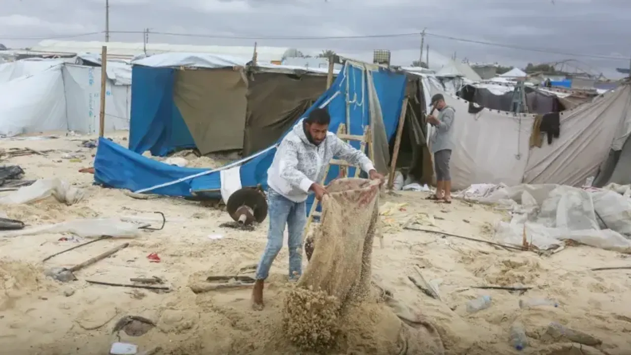 İsrail'in abluka altındaki Gazze Şeridi'ne yönelik saldırıları sürerken ordunun Gazze'nin güneyindeki Han Yunus kentinde yer alan Mevasi el-Karara bölgesine göç ettirdiği yerinden edilmiş Filistinlilerin sığındığı sahilde derme çatma çadırlarını deniz suyu bastı. Yerinden edilmiş Filistinlilerin yanlarında bulunan birkaç parça eşya ve yer yatakları sular altında kaldı.
