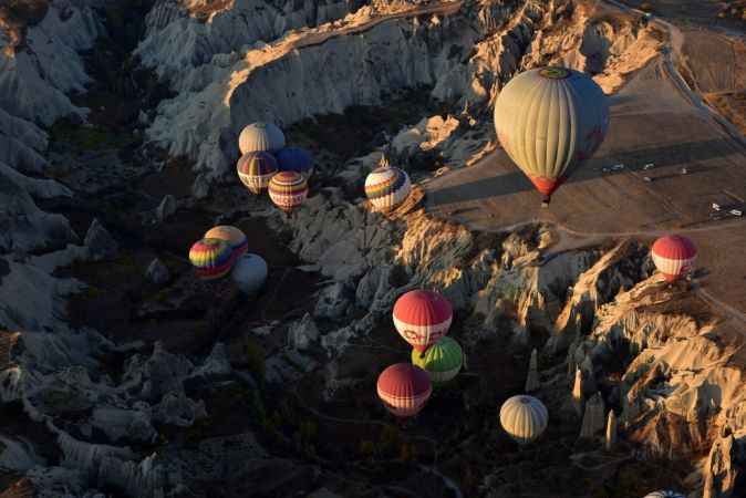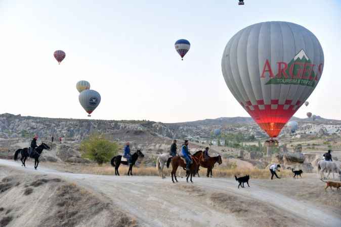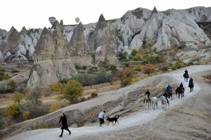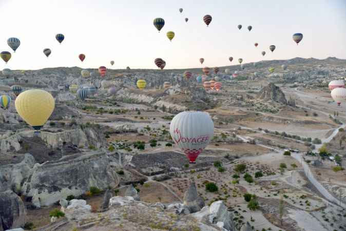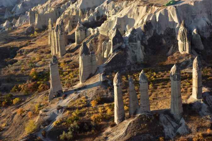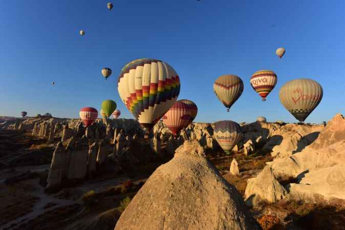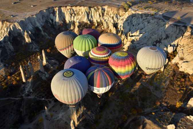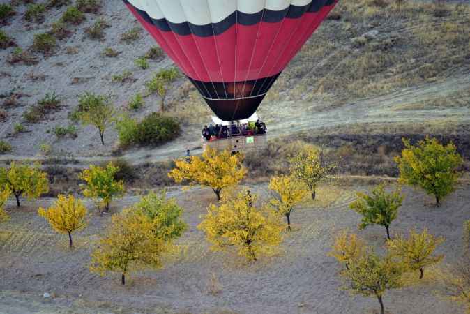 Doğa harikası yeryüzü şekilleri, tarihi ve kültürel değerleriyle yerli ve yabancı turistlerin akınına uğrayan Kapadokya’da peribacaları ve vadiler, sonbaharın renkleriyle farklı bir güzelliğe büründü. Sıcak hava balonculuğunun dünyadaki önemli merkezlerinden biri olan Kapadokya’da balon turlarına katılan ziyaretçiler, bölgenin sonbahar güzelliğini gökyüzünden de görerek fotoğrafla ölümsüzleştiriyor.