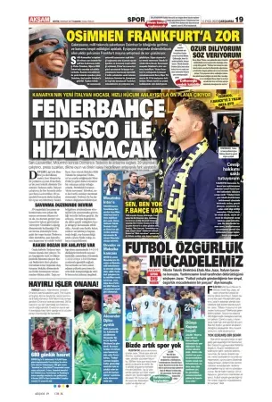 Günün spor manşetlerinde, spor gündemiyle alakalı en yeni gelişmeler yerlerini aldı. 10 Eylül 2025 tarihli gazetelerin spor sayfalarına, Beşiktaş, Fenerbahçe, Galatasaray ve Trabzonspor'a dair haberlere, bir çırpıda göz atın. İşte 10 Eylül 2025 gazete manşetlerinde spor haberleri.