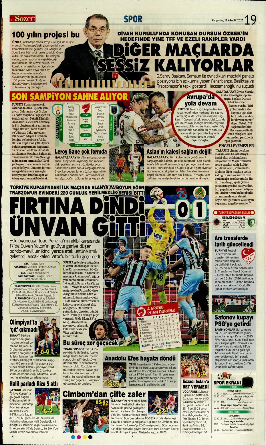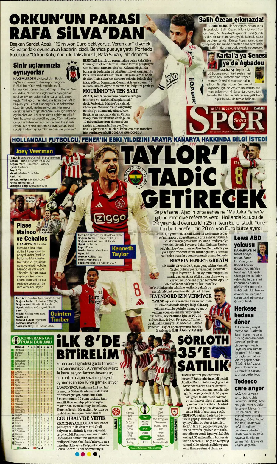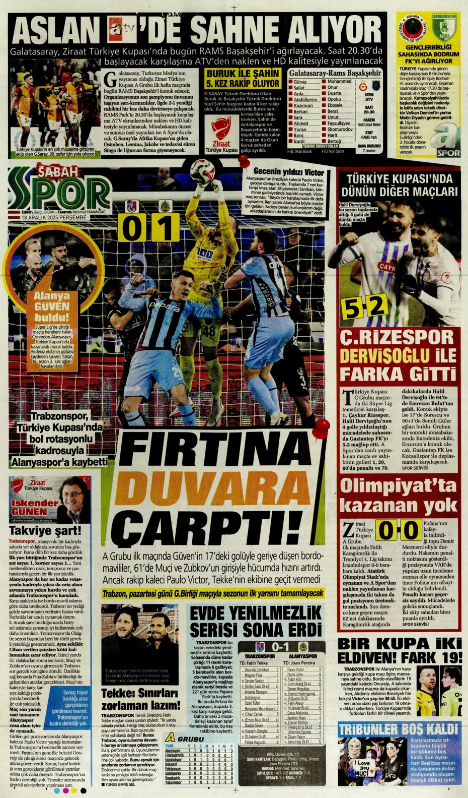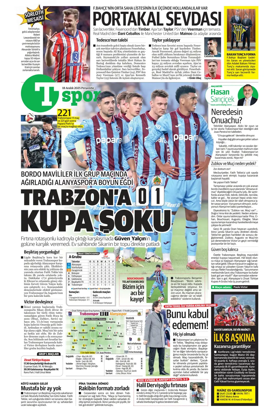 Spor haberleri: 18 Aralık 2025 gazetelerde futbol manşetleri