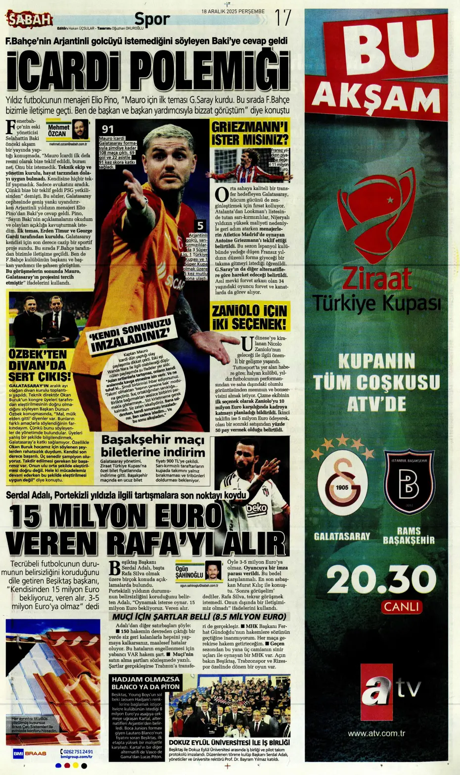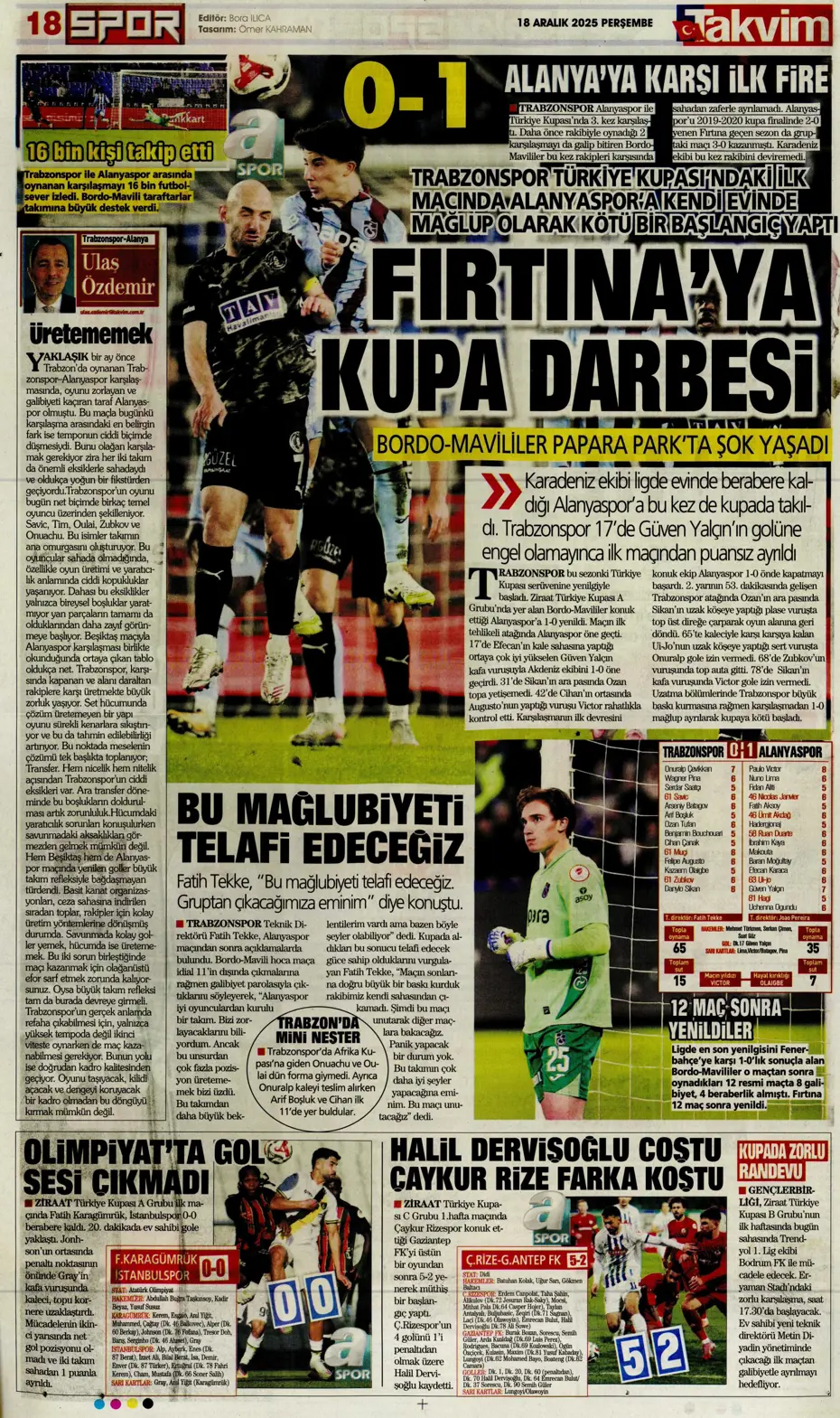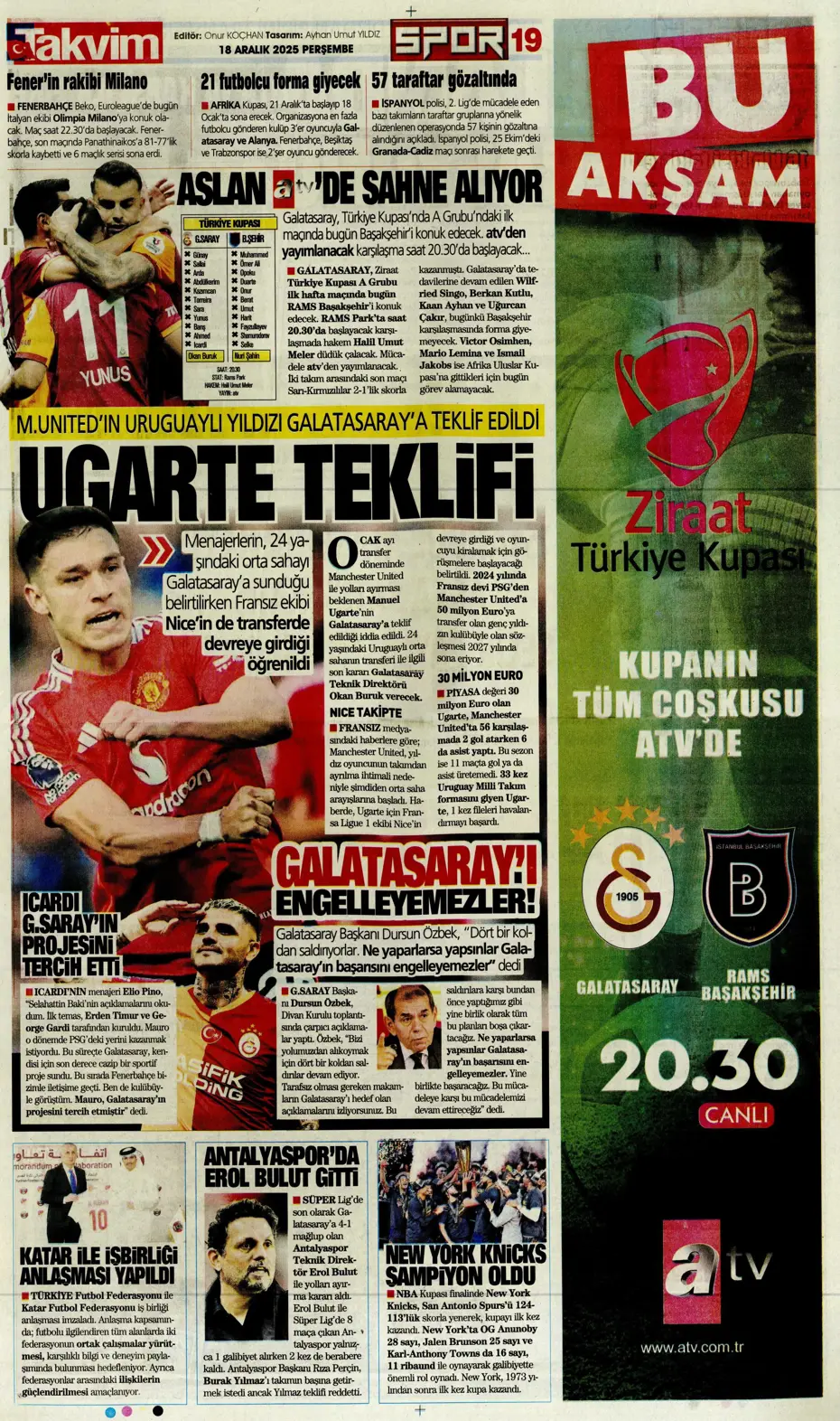 Spor haberleri: 18 Aralık 2025 gazetelerde futbol manşetleri