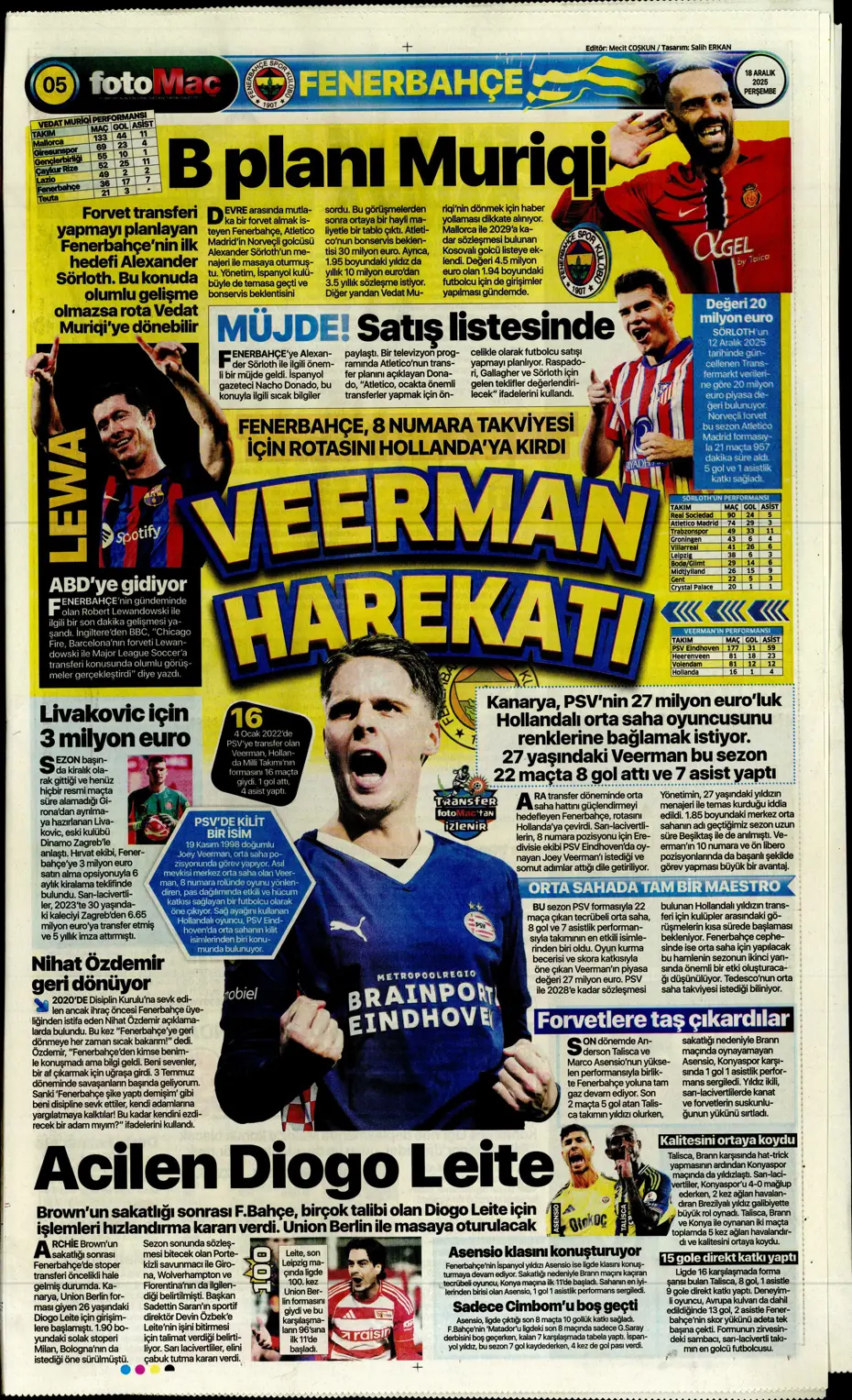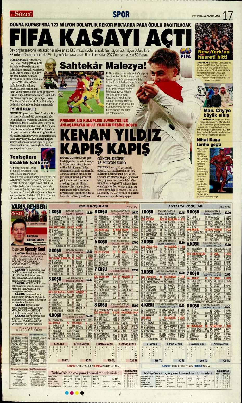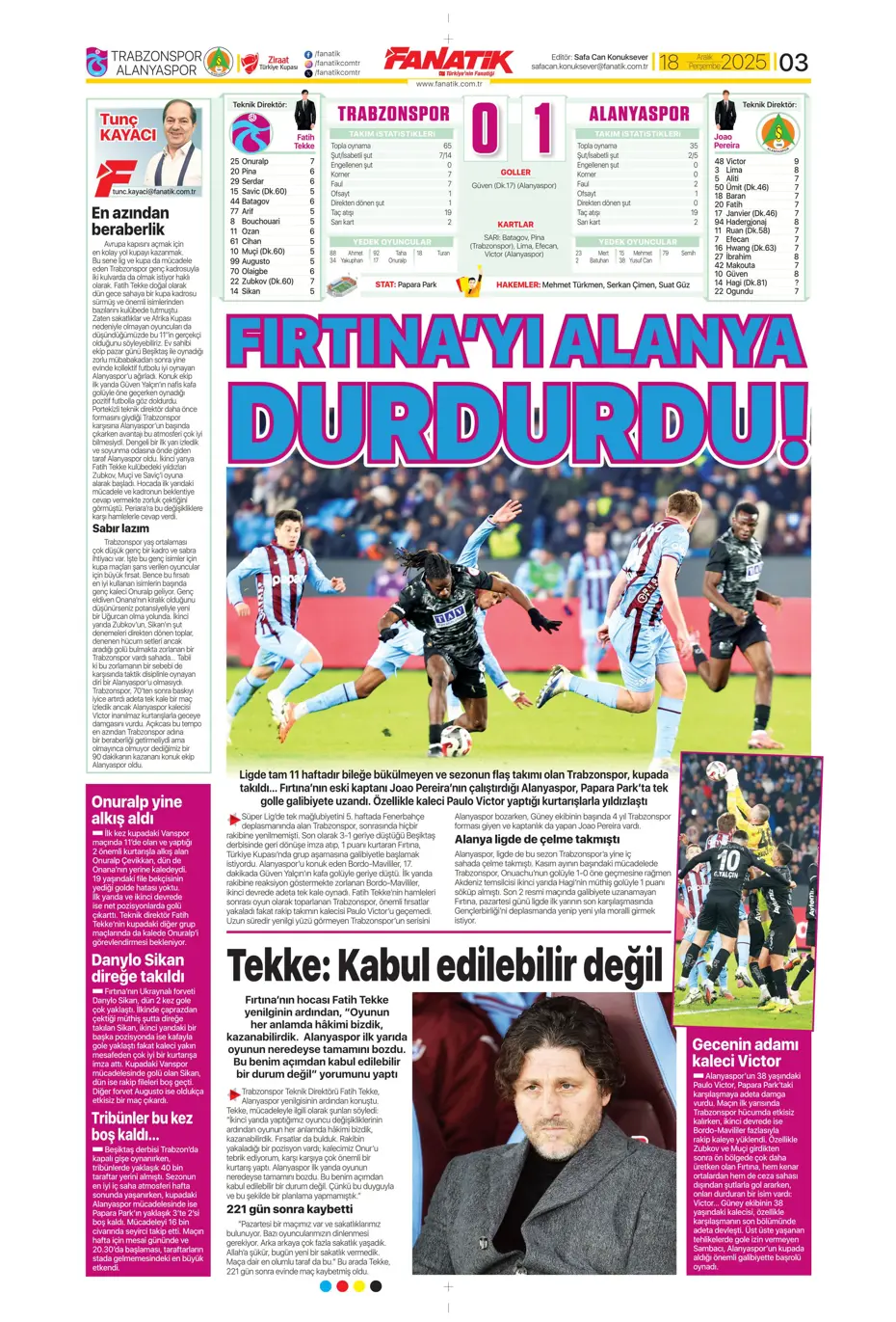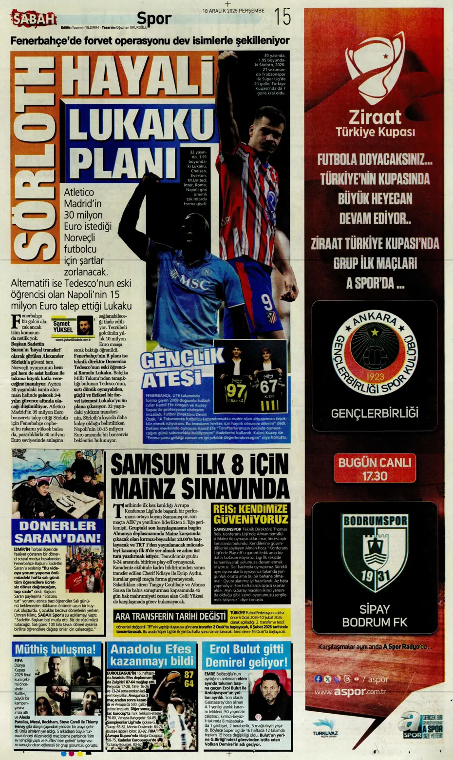 Spor haberleri: 18 Aralık 2025 gazetelerde futbol manşetleri