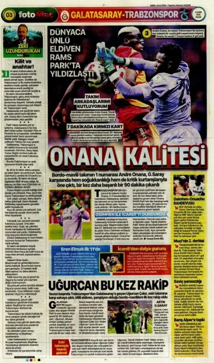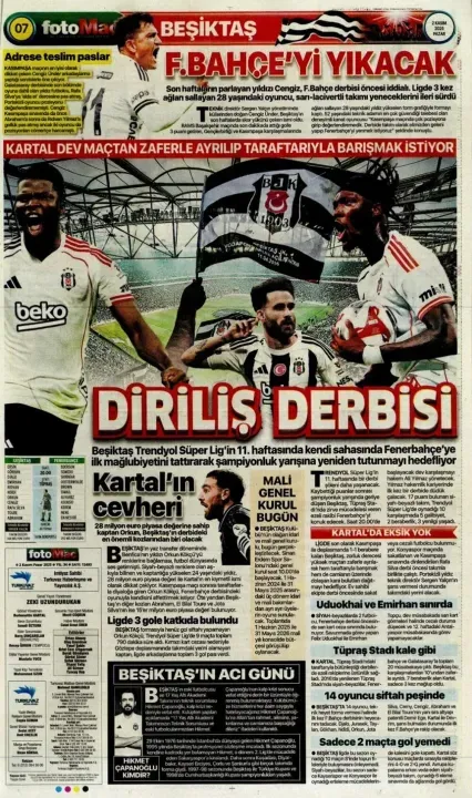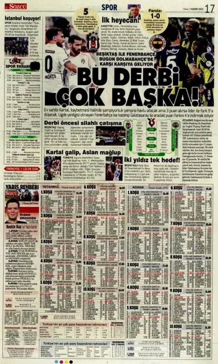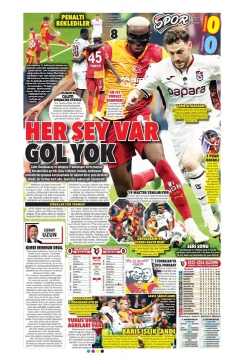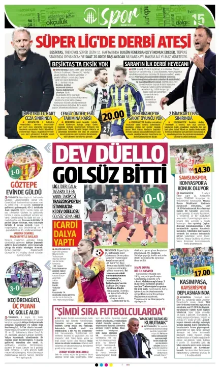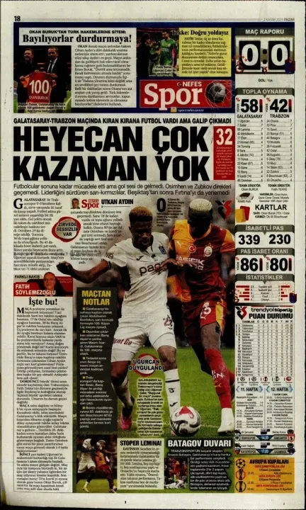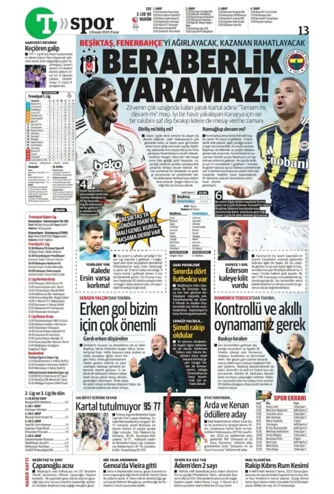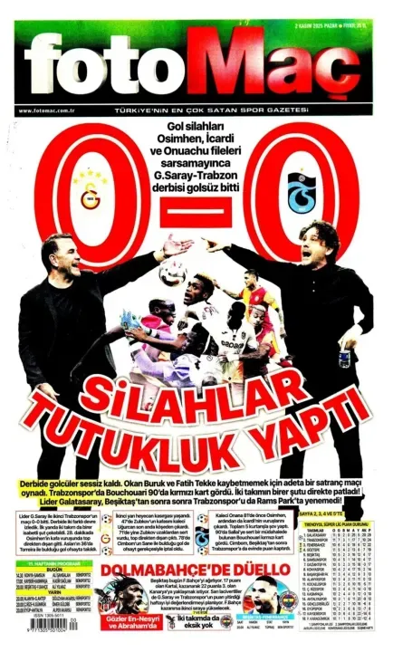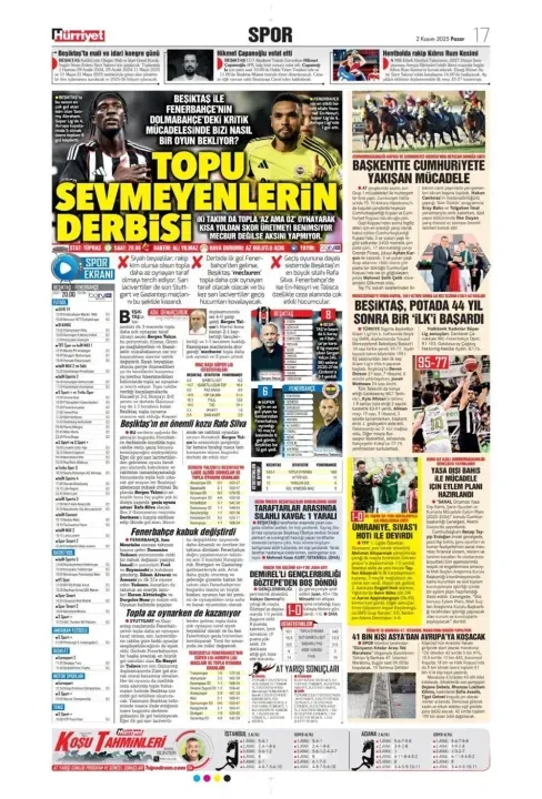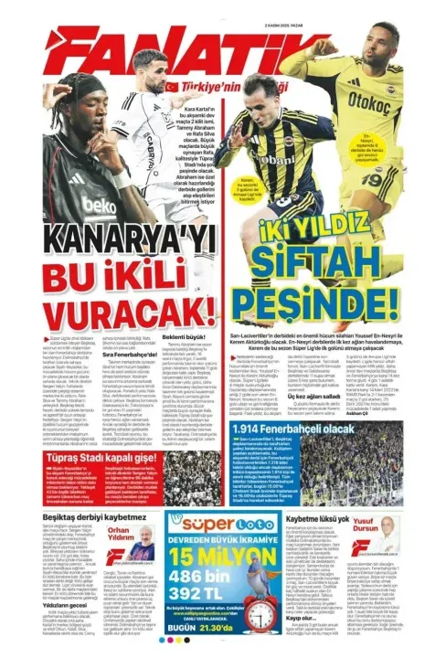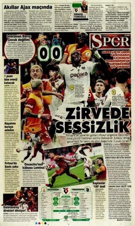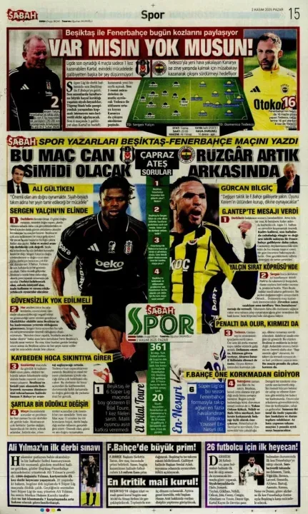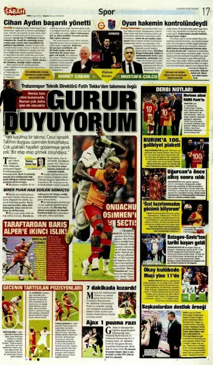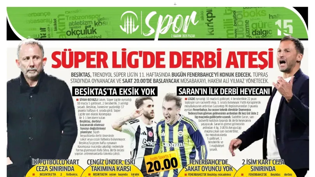 Günün spor manşetlerinde, spor gündemiyle alakalı en yeni gelişmeler yerlerini aldı. 2 Kasım 2025 tarihli gazetelerin spor sayfalarına, Beşiktaş, Fenerbahçe, Galatasaray ve Trabzonspor'a dair haberlere, bir çırpıda göz atın. İşte 2 Kasım 2025 gazete manşetlerinde spor haberleri.