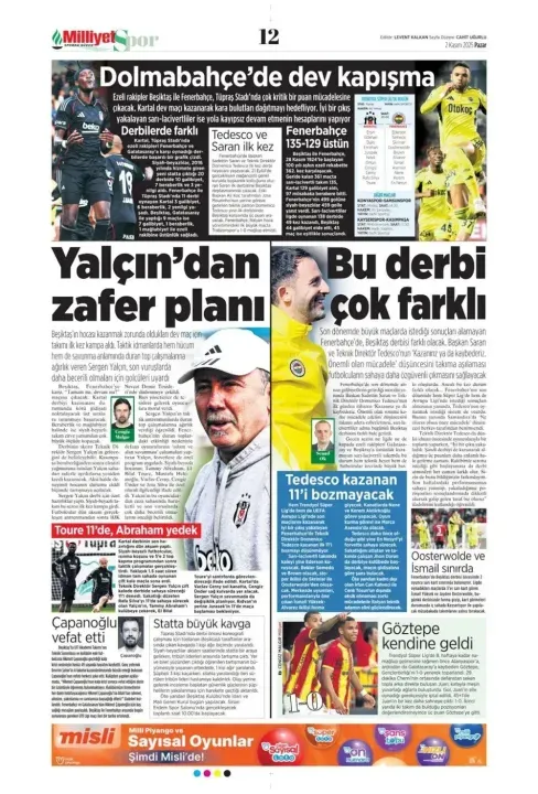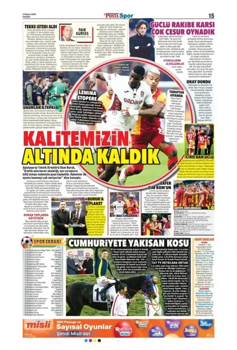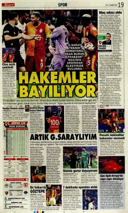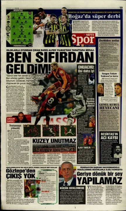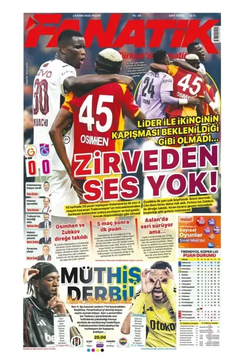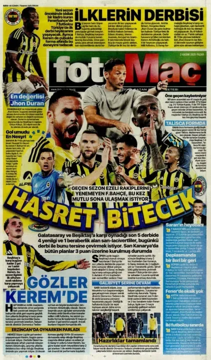 Spor haberleri: 2 Kasım 2025 gazetelerde futbol manşetleri