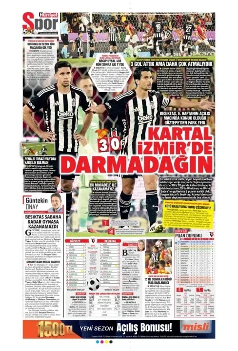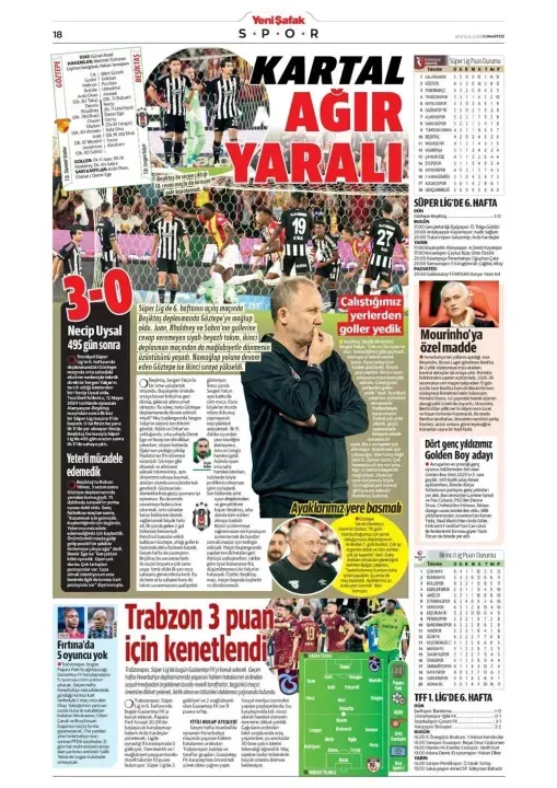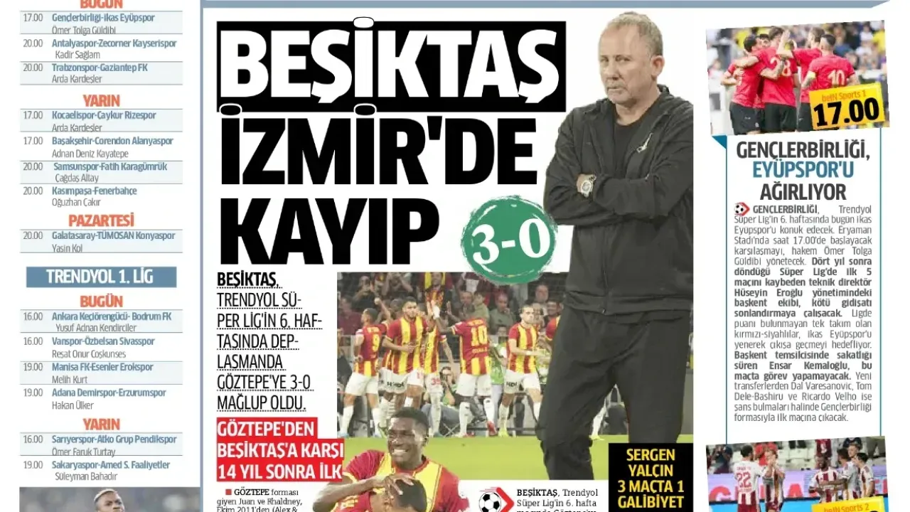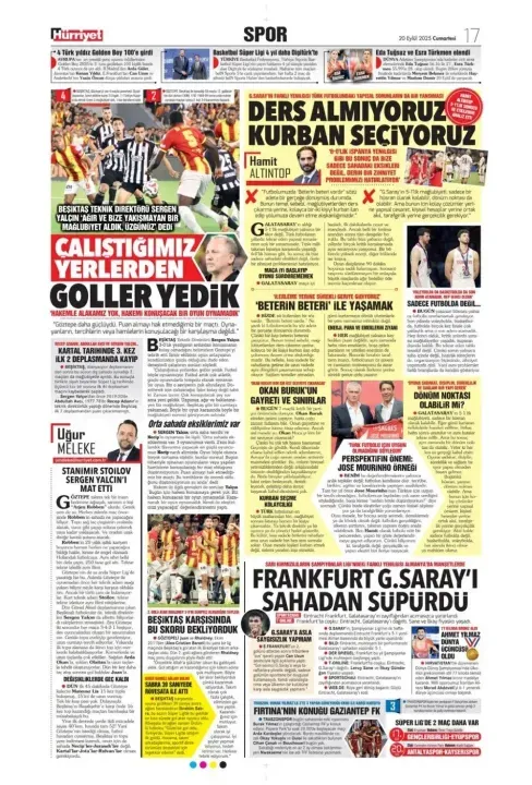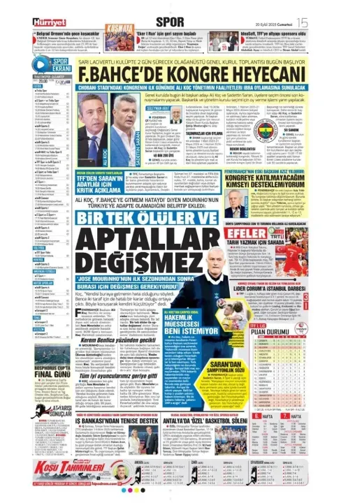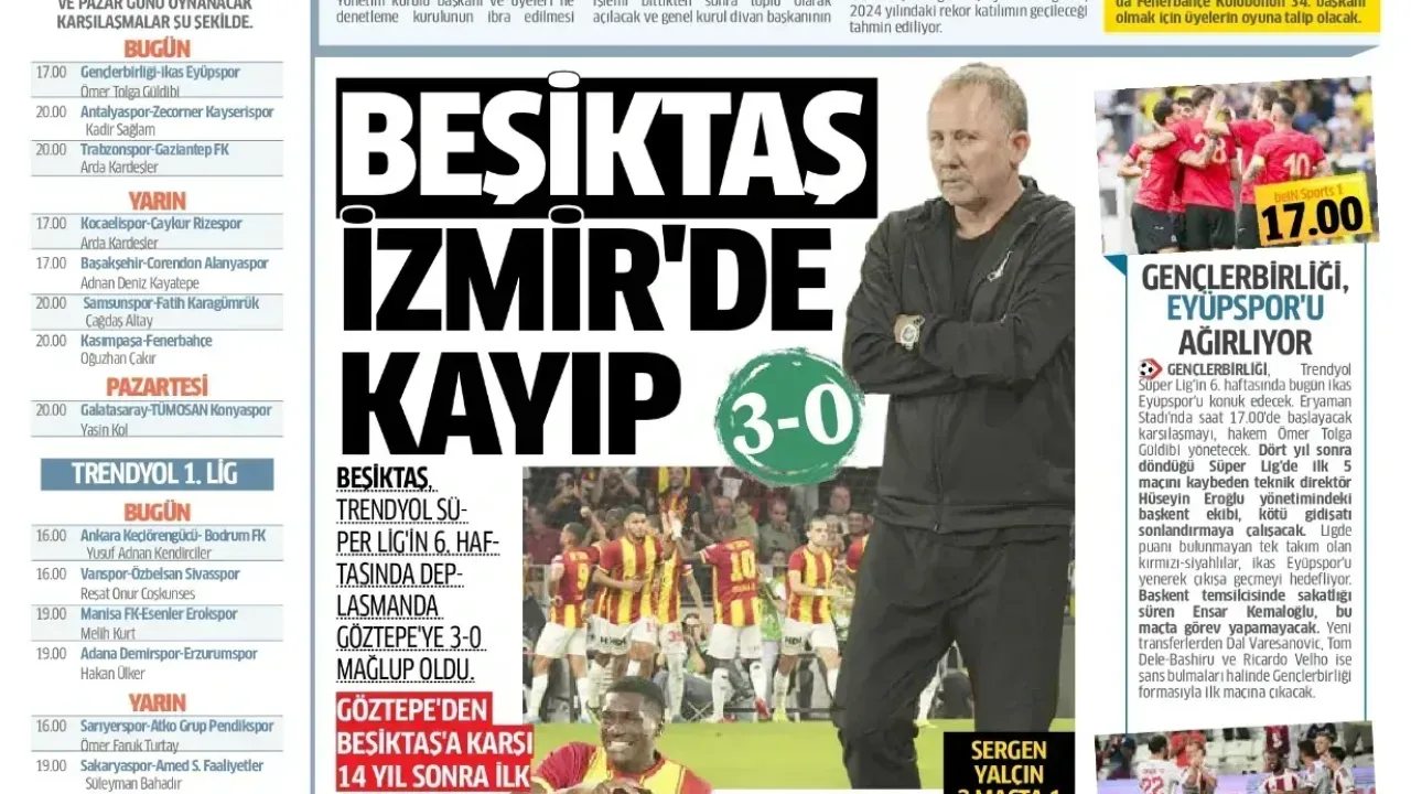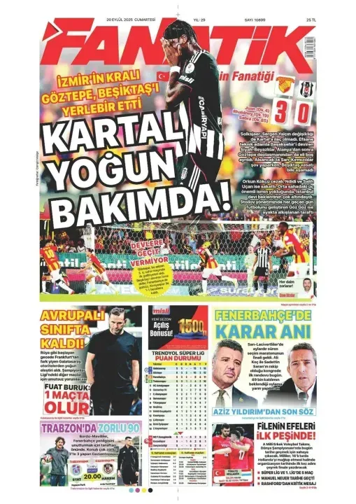 Günün spor manşetlerinde, spor gündemiyle alakalı en yeni gelişmeler yerlerini aldı. 20 Eylül 2025 tarihli gazetelerin spor sayfalarına, Beşiktaş, Fenerbahçe, Galatasaray ve Trabzonspor'a dair haberlere, bir çırpıda göz atın. İşte 20 Eylül 2025 gazete manşetlerinde spor haberleri.