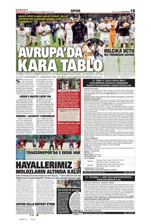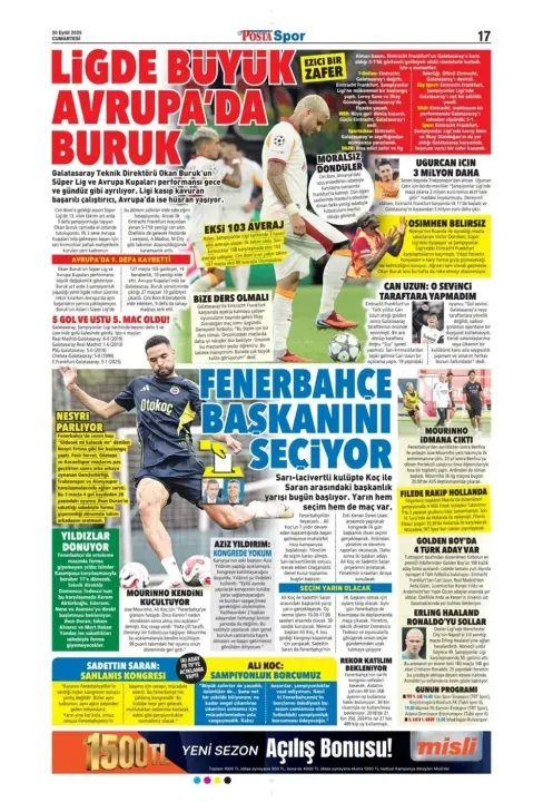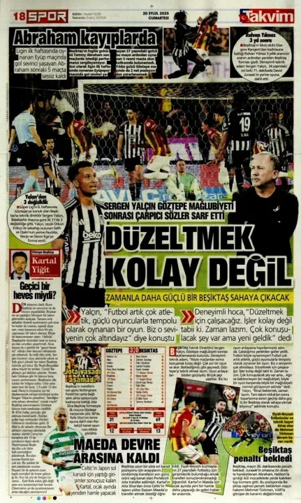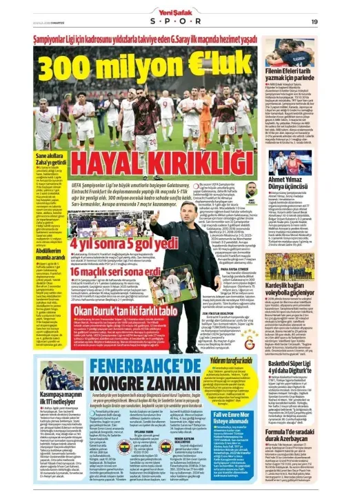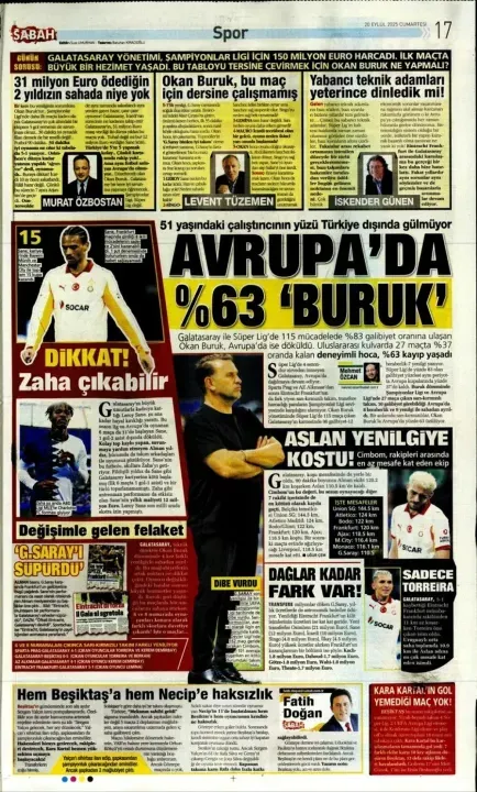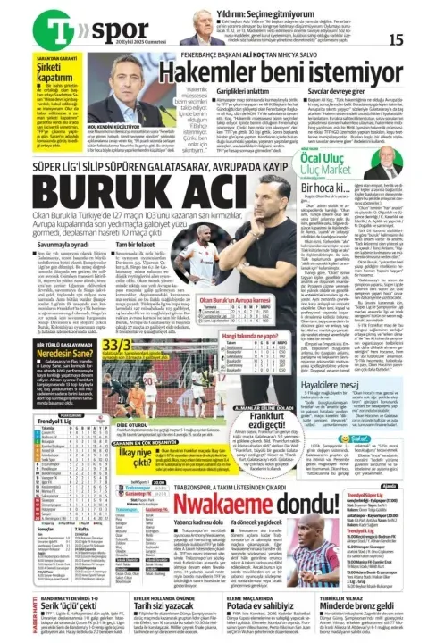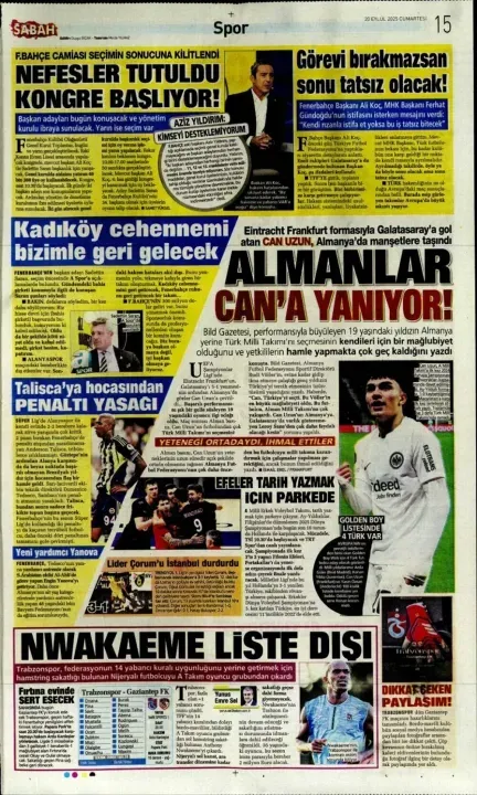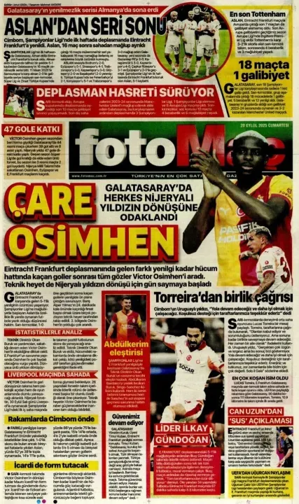 Spor haberleri: 20 Eylül 2025 gazetelerde futbol manşetleri