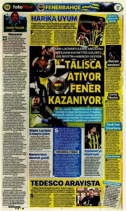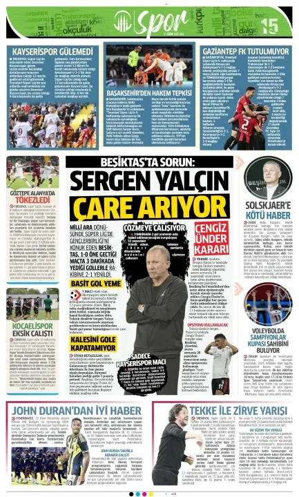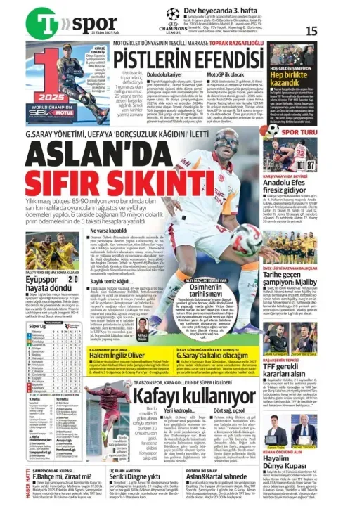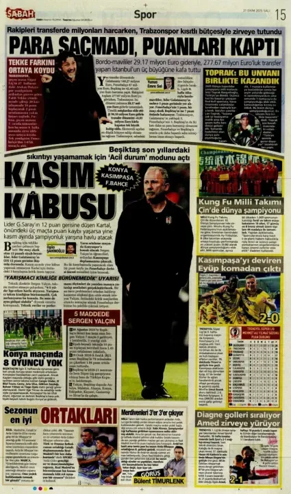 Günün spor manşetlerinde, spor gündemiyle alakalı en yeni gelişmeler yerlerini aldı. 21 Ekim 2025 tarihli gazetelerin spor sayfalarına, Beşiktaş, Fenerbahçe, Galatasaray ve Trabzonspor'a dair haberlere, bir çırpıda göz atın. İşte 21 Ekim 2025 gazete manşetlerinde spor haberleri.