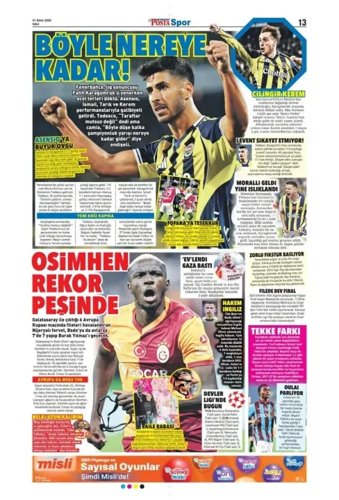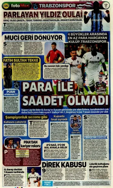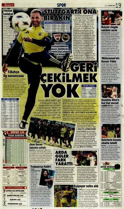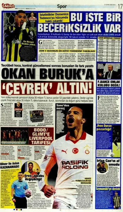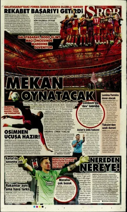 Spor haberleri: 21 Ekim 2025 gazetelerde futbol manşetleri