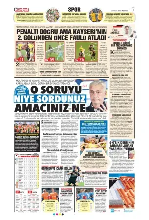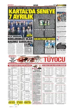 Günün spor manşetlerinde, spor gündemiyle alakalı en yeni gelişmeler yerlerini aldı. 21 Nisan 2025 tarihli gazetelerin spor sayfalarına, Beşiktaş, Fenerbahçe, Galatasaray ve Trabzonspor'a dair haberlere, bir çırpıda göz atın. İşte 21 Nisan 2025 gazete manşetlerinde spor haberleri.