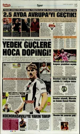 Günün spor manşetlerinde, spor gündemiyle alakalı en yeni gelişmeler yerlerini aldı. 22 Mart 2025 tarihli gazetelerin spor sayfalarına, Beşiktaş, Fenerbahçe, Galatasaray ve Trabzonspor'a dair haberlere, bir çırpıda göz atın. 22 Mart 2025 gazete manşetlerinde spor haberleri: