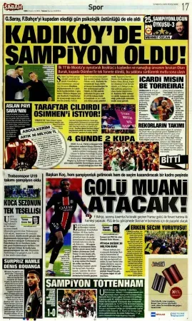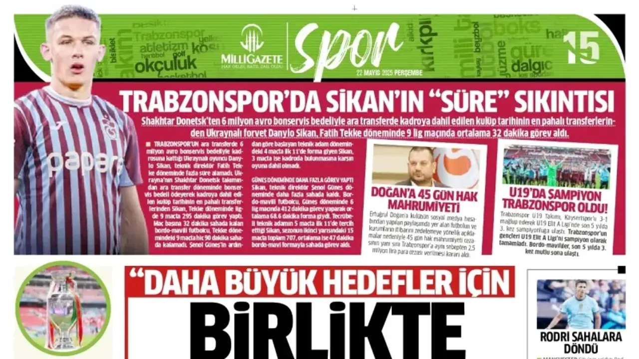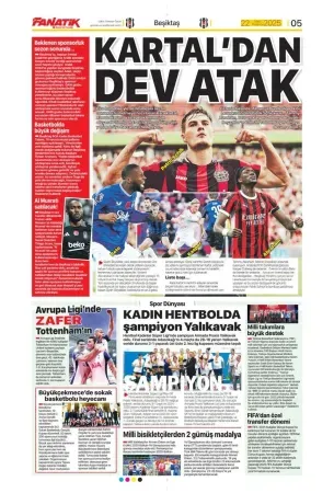 Günün spor manşetlerinde, spor gündemiyle alakalı en yeni gelişmeler yerlerini aldı. 22 Mayıs 2025 tarihli gazetelerin spor sayfalarına, Beşiktaş, Fenerbahçe, Galatasaray ve Trabzonspor'a dair haberlere, bir çırpıda göz atın. İşte 22 Mayıs 2025 gazete manşetlerinde spor haberleri.